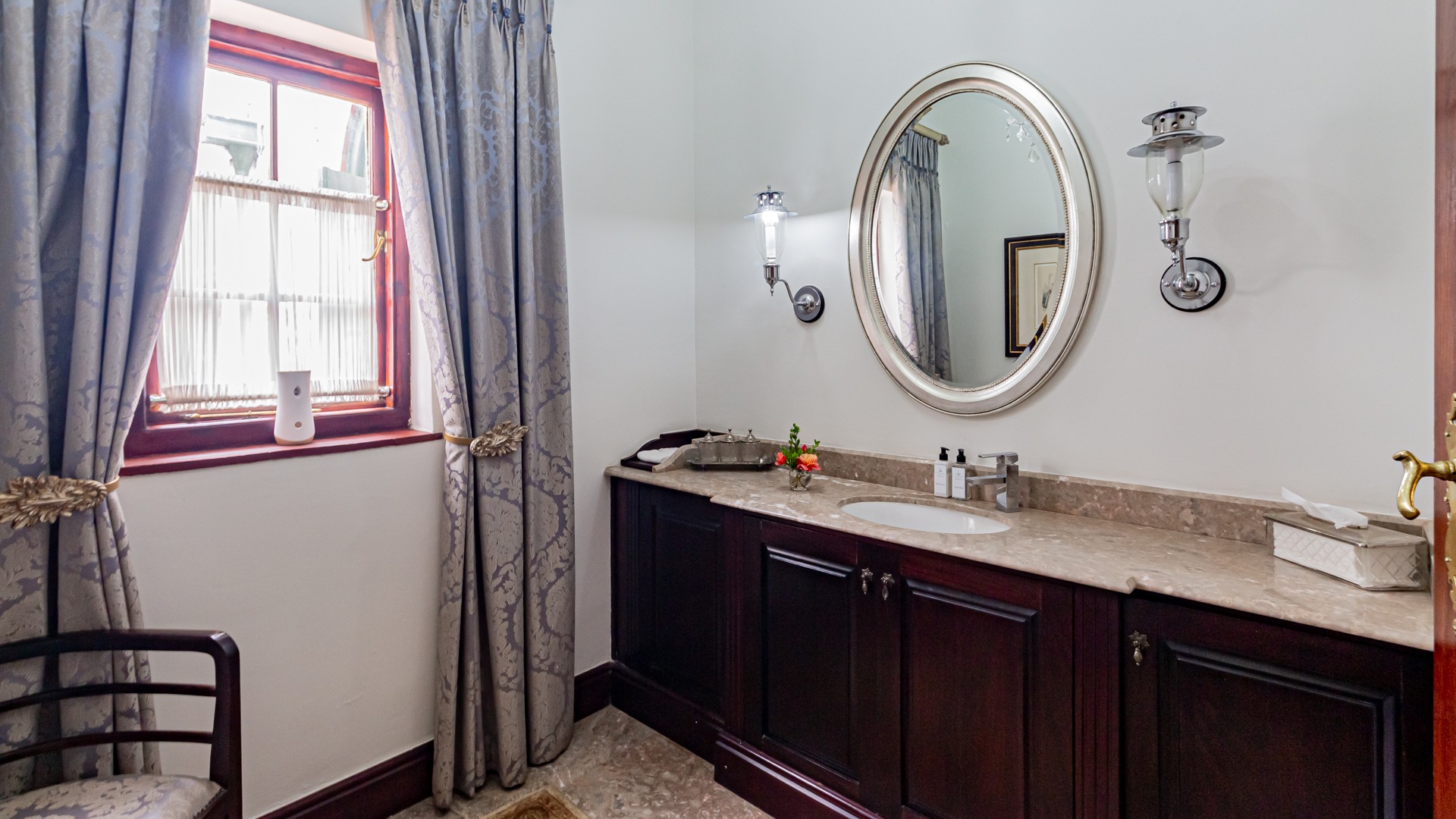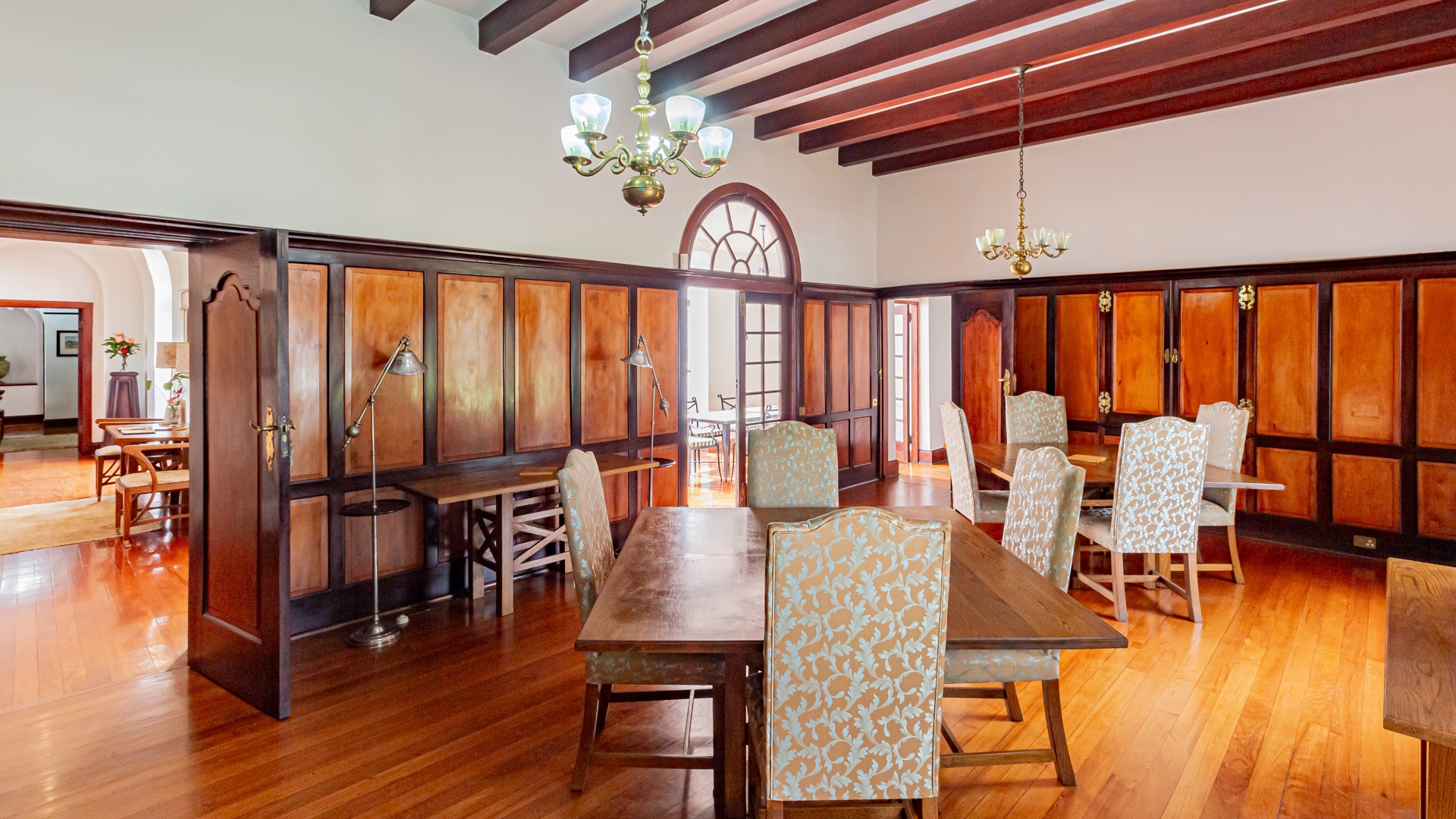 Inside, the home offers a meticulously planned layout with five spacious lounges and four dedicated dining rooms, providing ample space for both intimate gatherings and grand celebrations. The well-appointed kitchen includes a convenient pantry, while an entrance hall, private study, and a built-in bar enhance the sophisticated interior. Comfort is assured with air conditioning throughout, and the property is offered fully furnished, ready for immediate occupation.