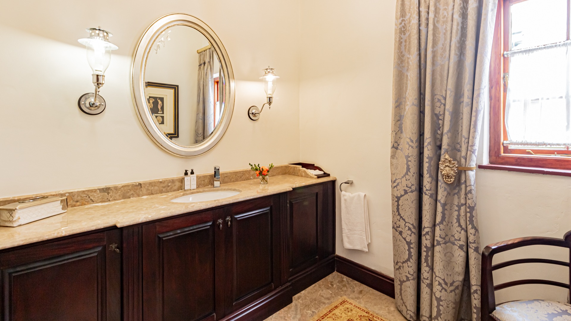 This magnificent property showcases classic Cape Dutch architecture, featuring pristine white walls, distinctive, red-tiled roofs, and charming green shutters, creating an immediate sense of stately elegance and curb appeal. The expansive 1500 sqm residence is designed for luxurious living and entertaining.