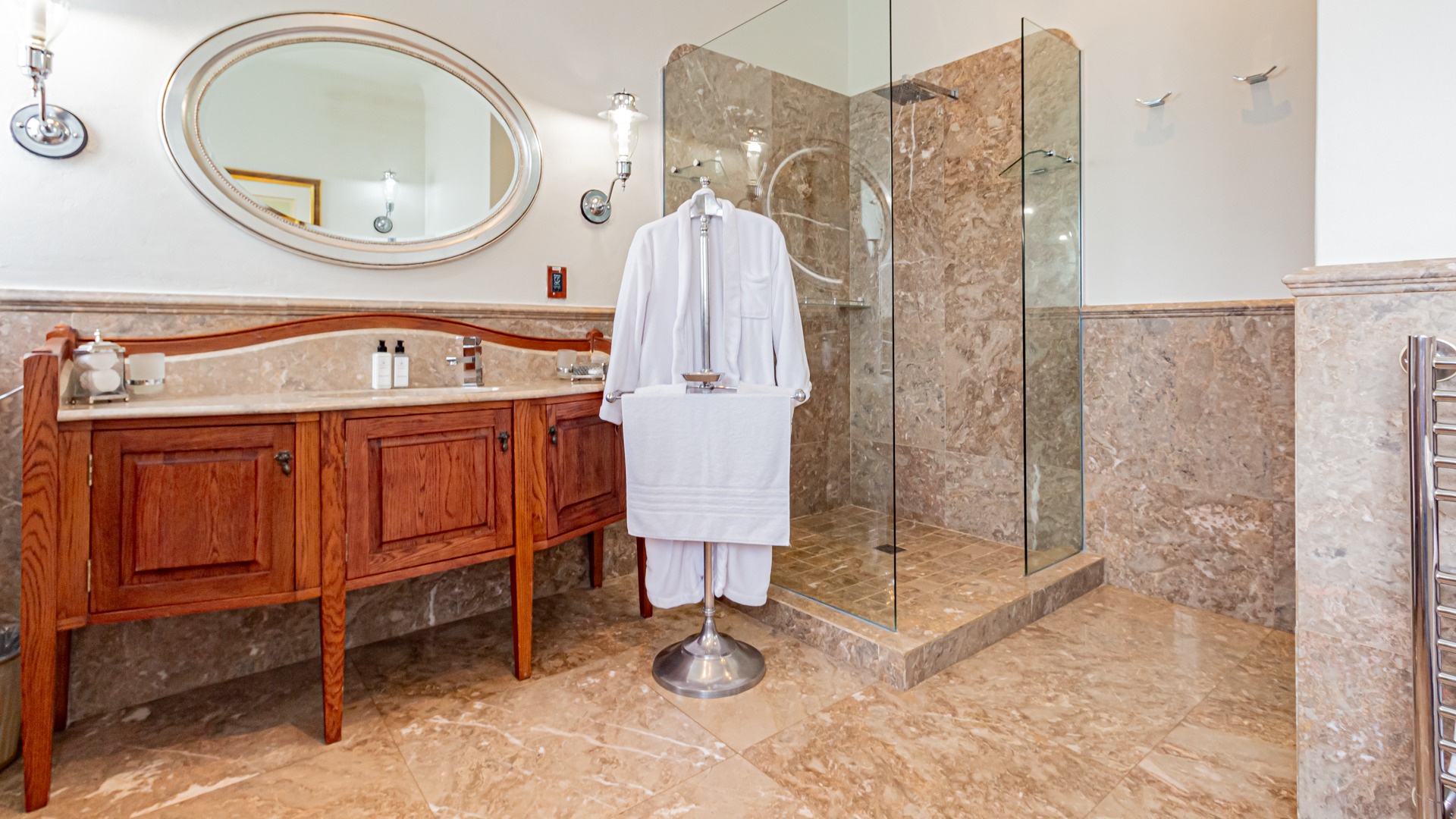 Accommodation comprises eight generously sized bedrooms, each boasting its own en-suite bathroom, ensuring privacy and comfort for all residents. With a total of eleven bathrooms, including guest facilities, convenience is paramount. The property also features staff quarters and a dedicated laundry room.