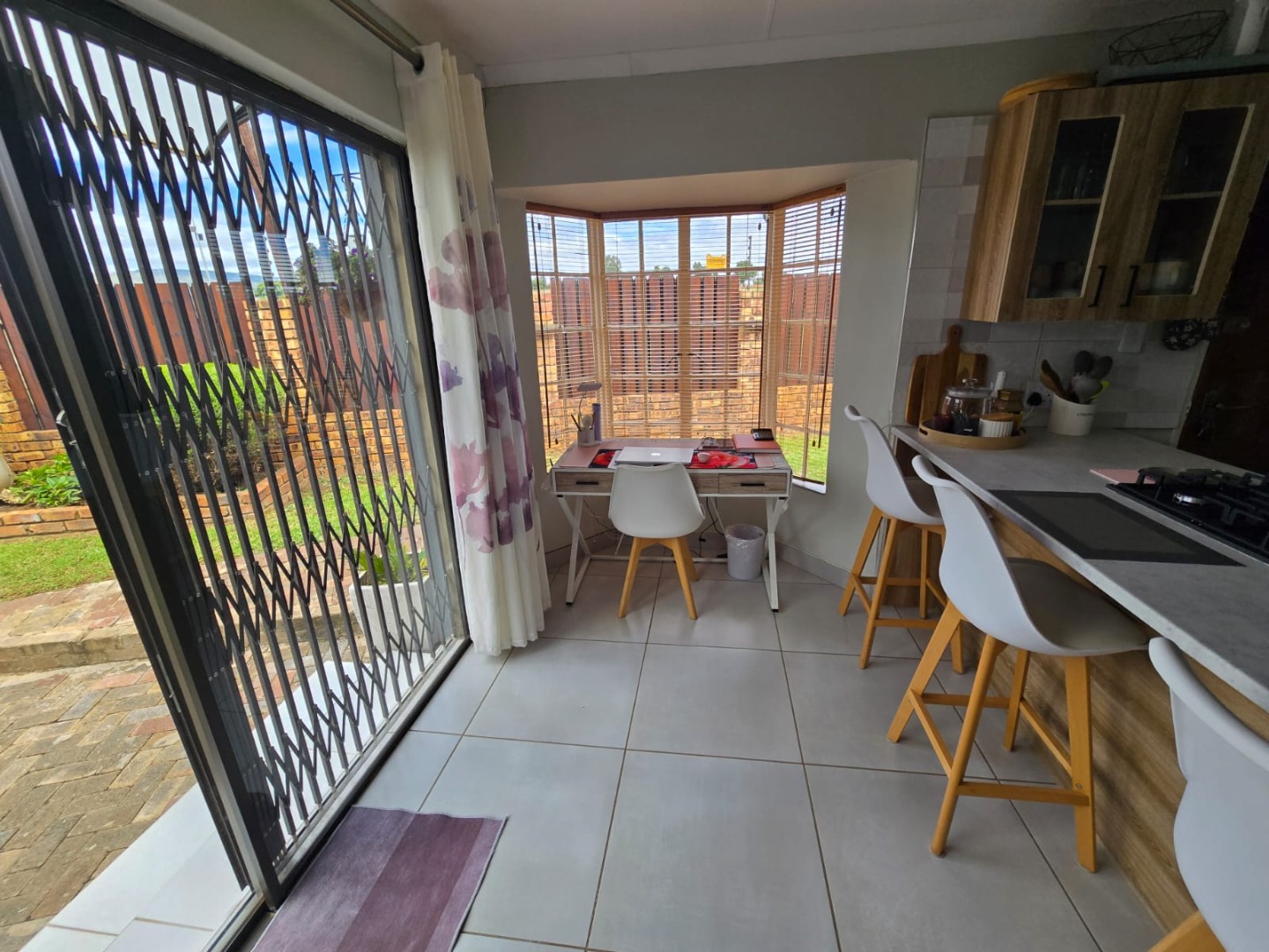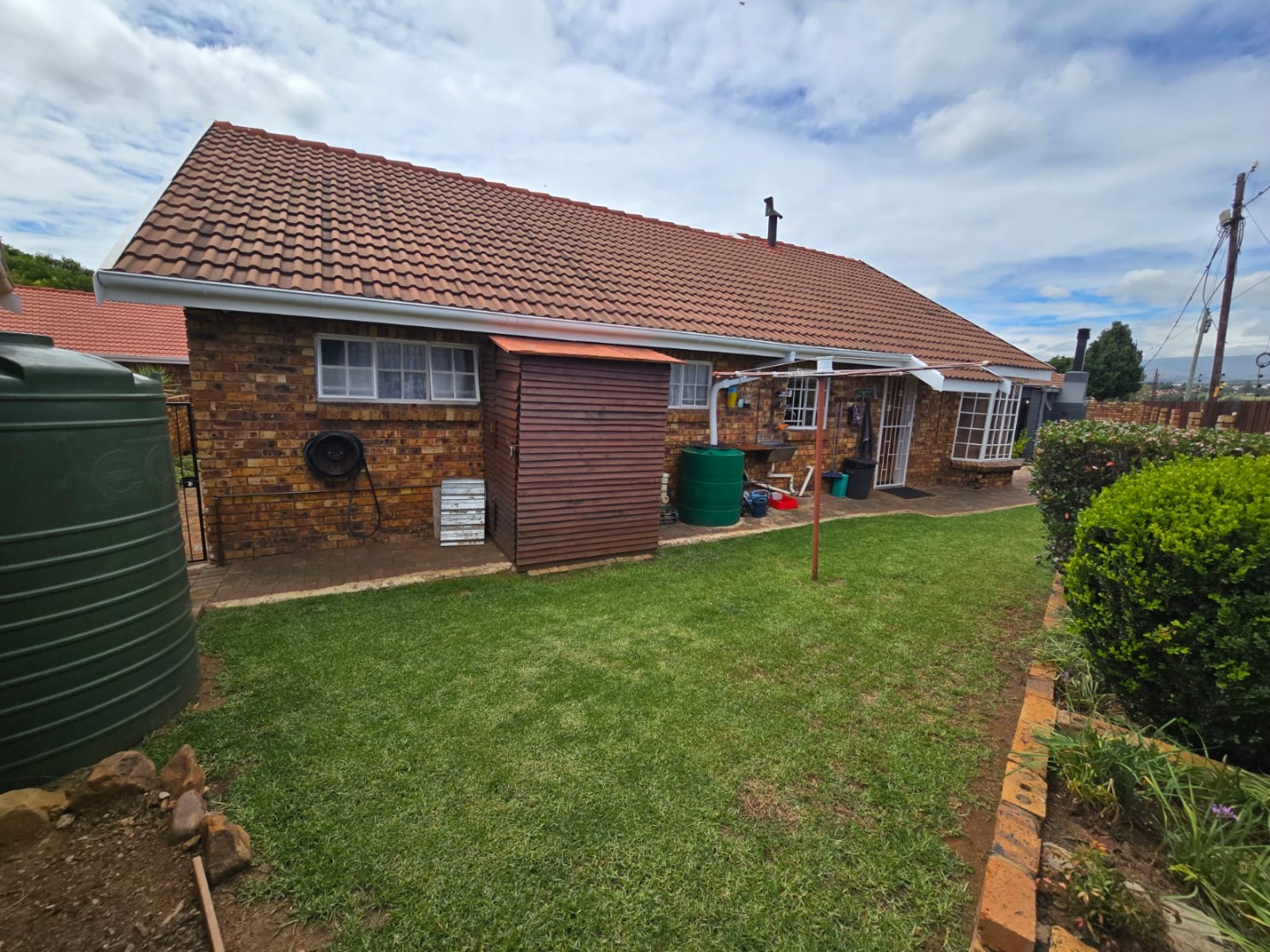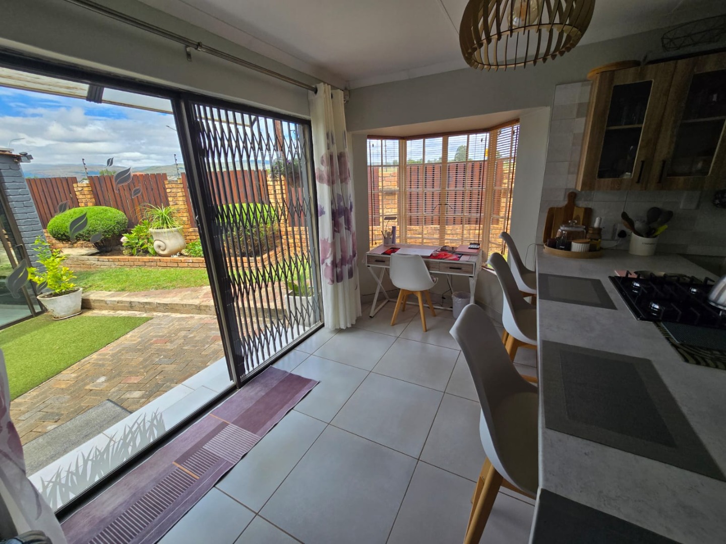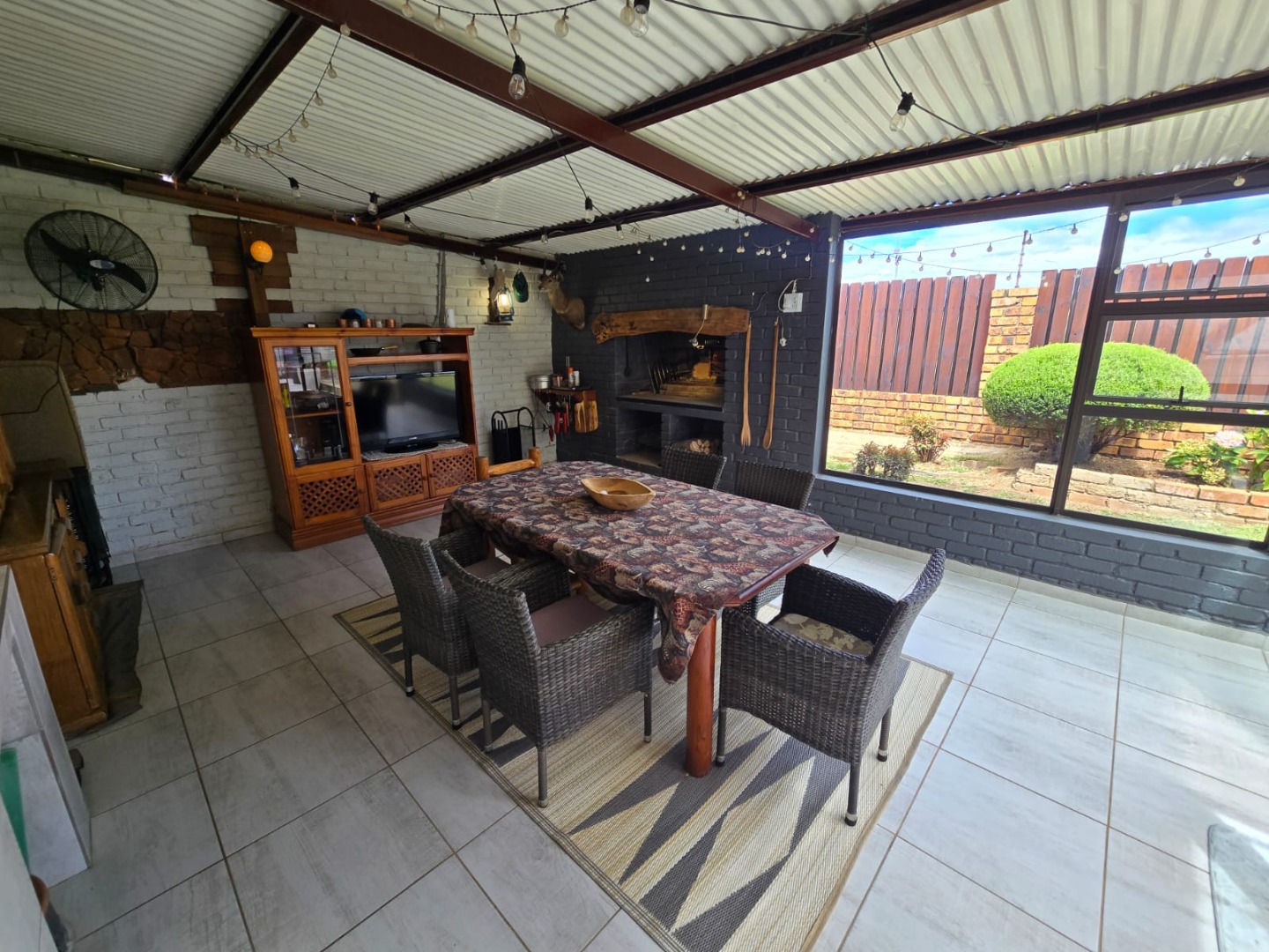 Step outside to the private patio, complete with a built-in braai, ideal for weekend gatherings or quiet evenings enjoying the outdoors. Rain water is gathered in a JoJo tank with a pump, offering peace of mind and self-sufficiency. Energy efficiency is a highlight, with a solar geyser equipped solar panels included in the price, plus additional solar panels, two batteries, and an inverter, helping reduce electricity costs and supporting sustainable living. This property is equipped with outside security beams.