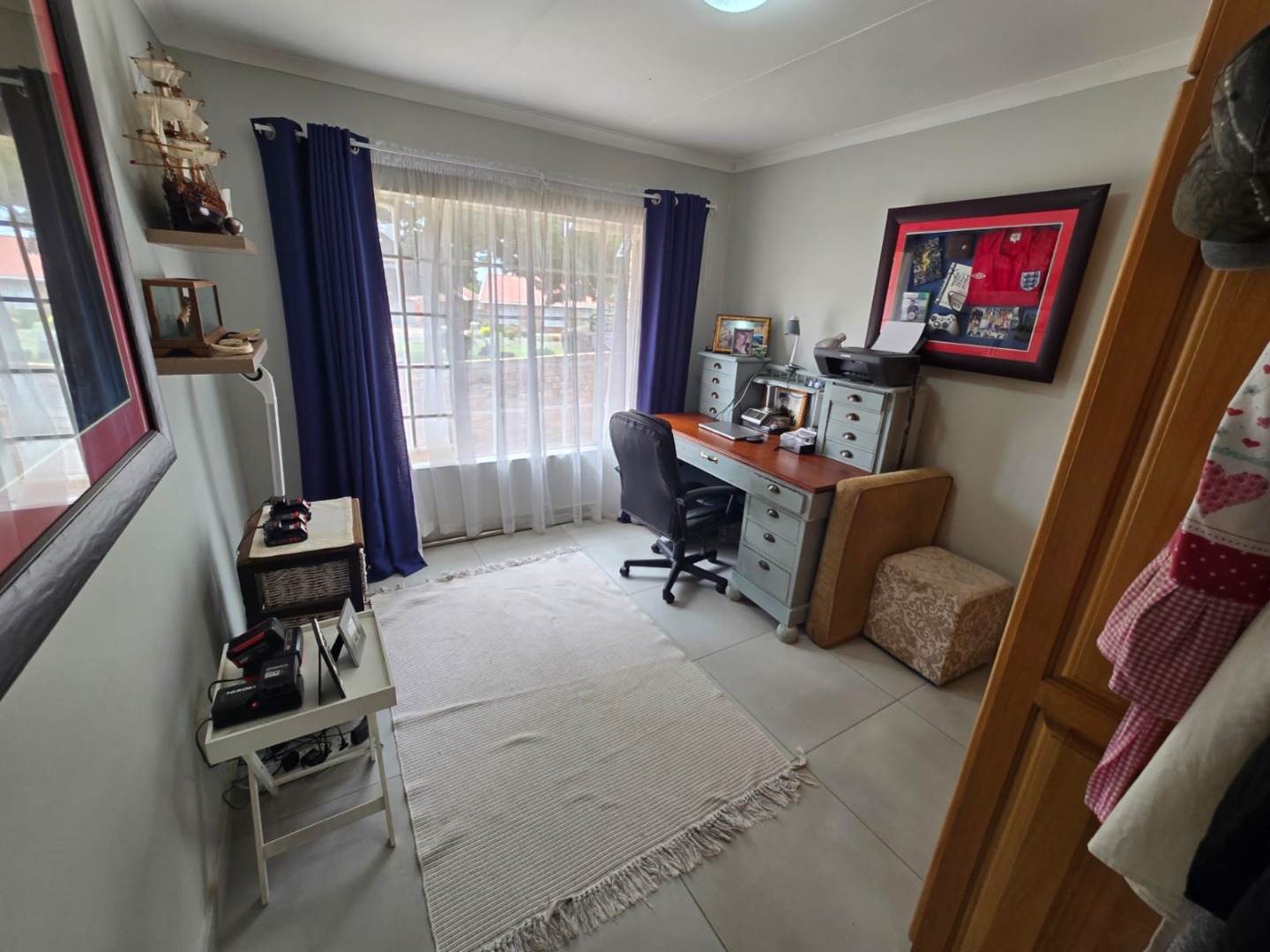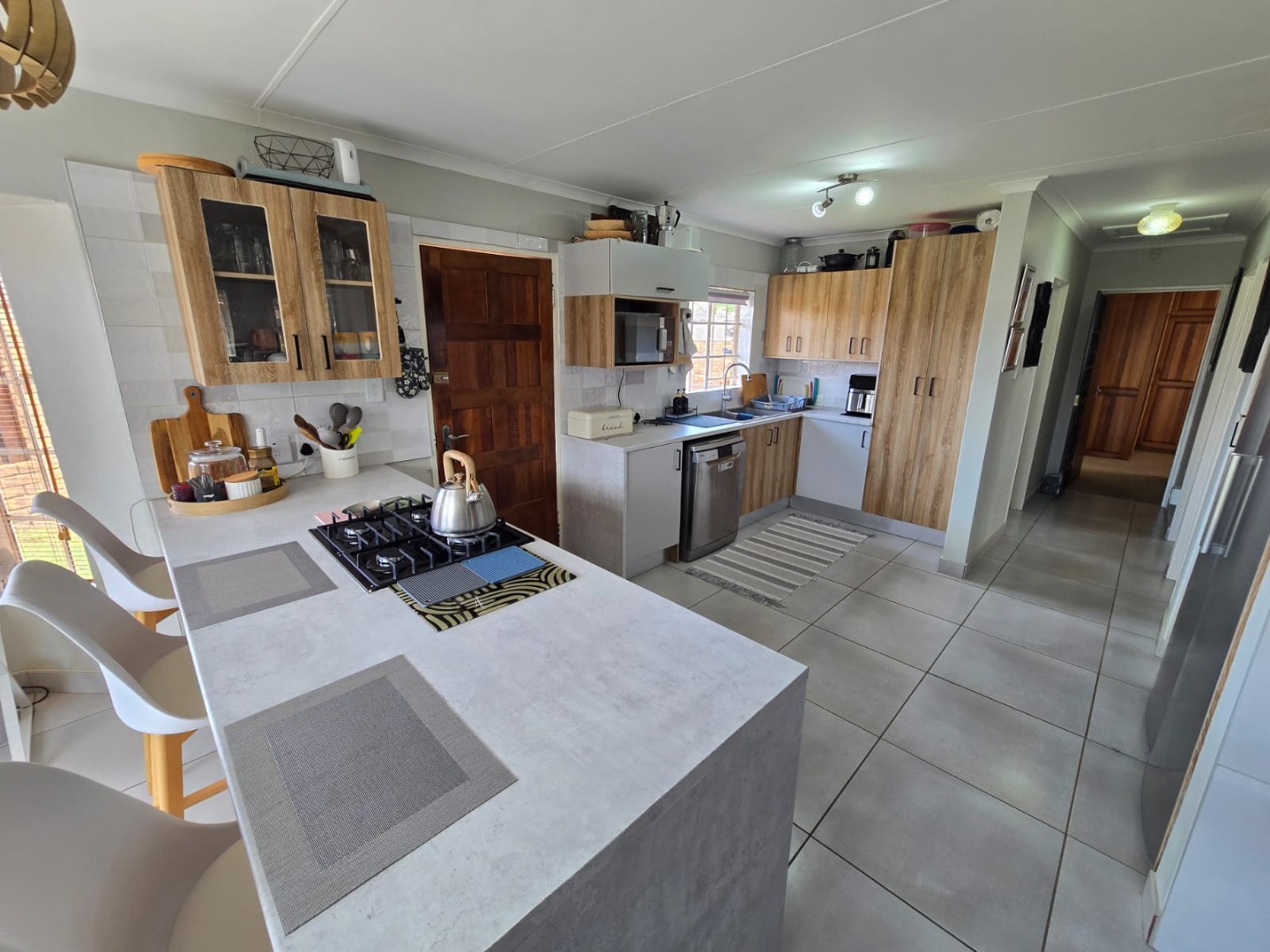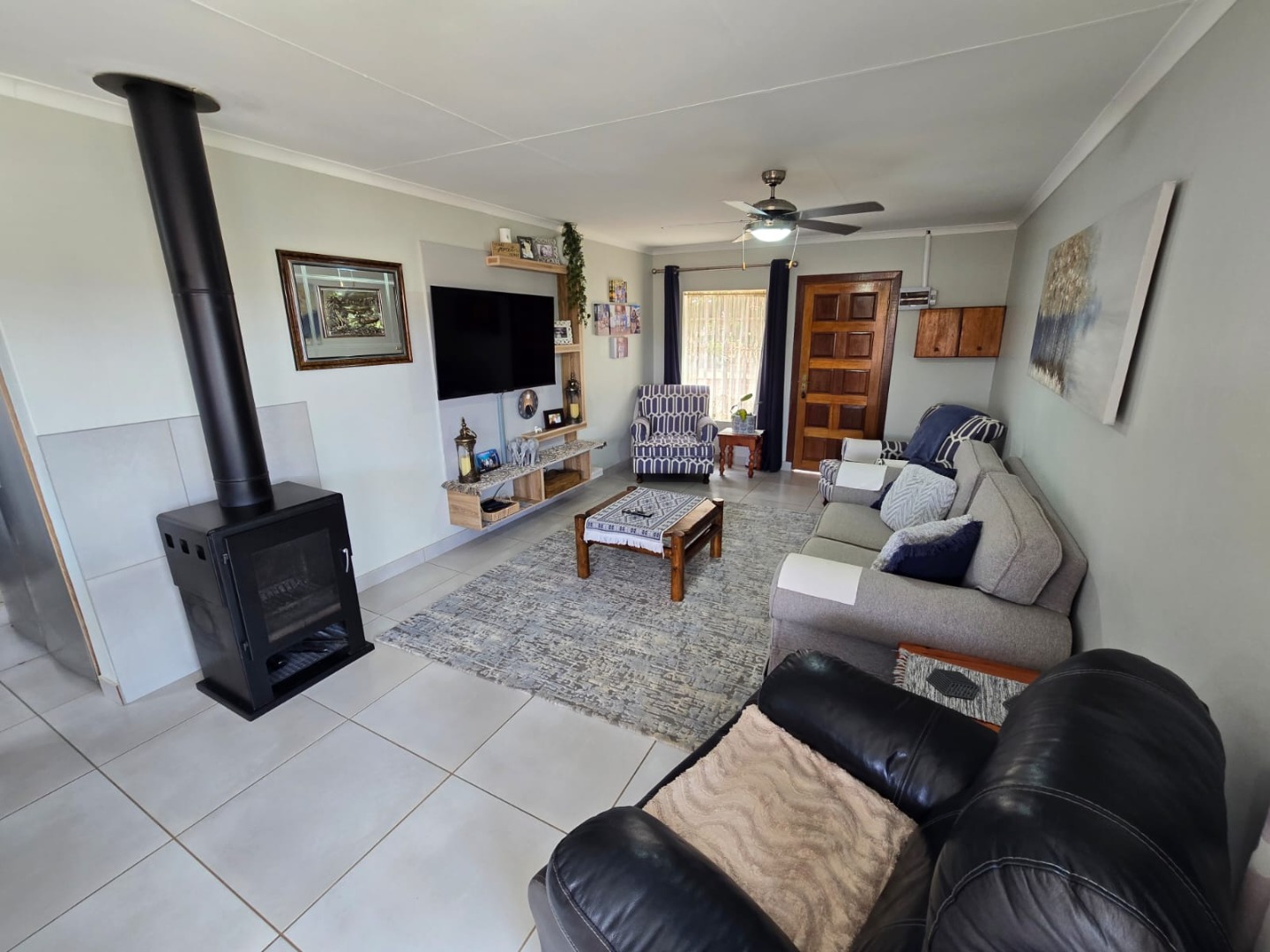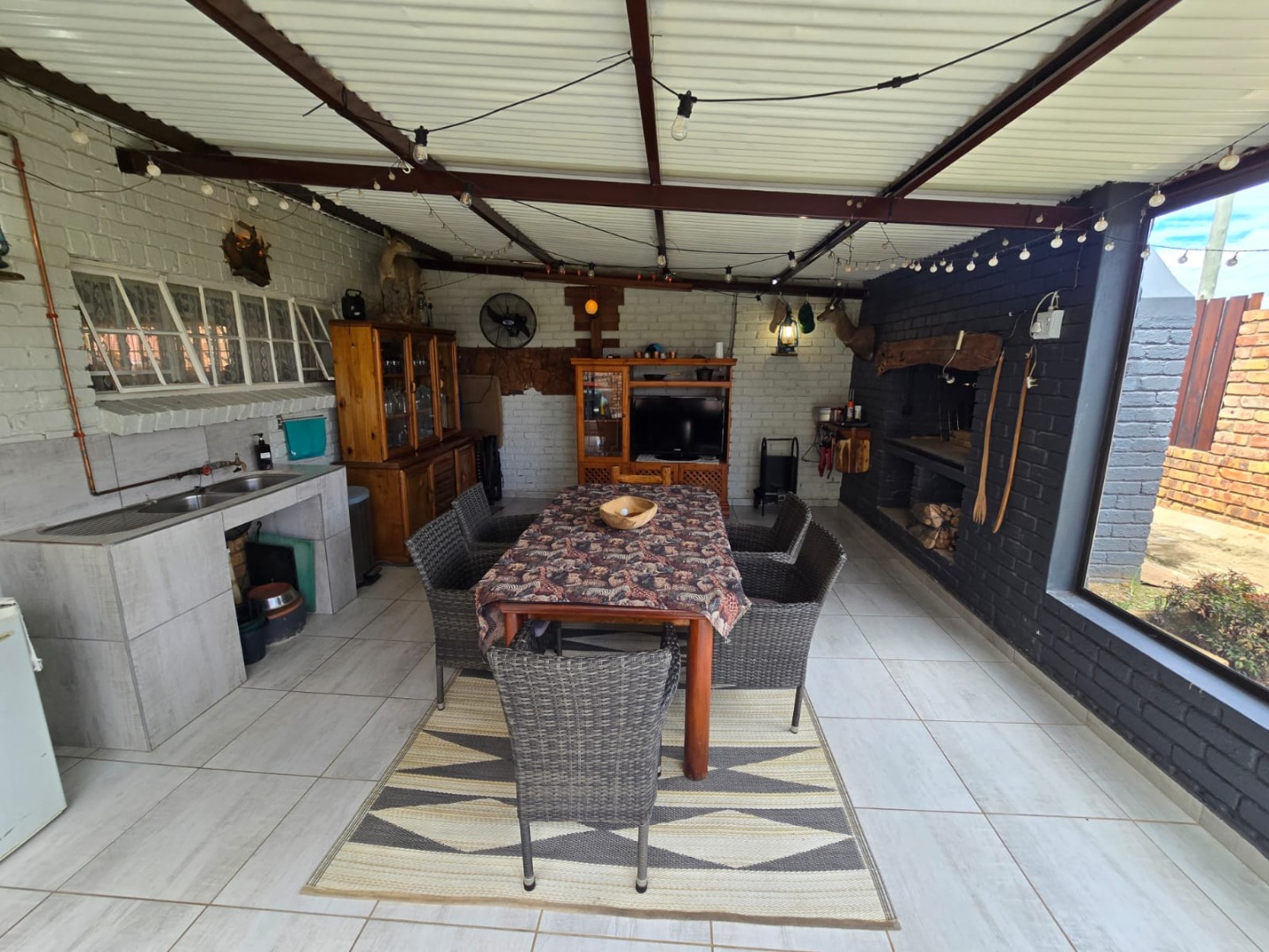 Step outside to the private patio, complete with a built-in braai, ideal for weekend gatherings or quiet evenings enjoying the outdoors. Rain water is gathered in a JoJo tank with a pump, offering peace of mind and self-sufficiency. Energy efficiency is a highlight, with a solar geyser equipped solar panels included in the price, plus additional solar panels, two batteries, and an inverter, helping reduce electricity costs and supporting sustainable living. This property is equipped with outside security beams.