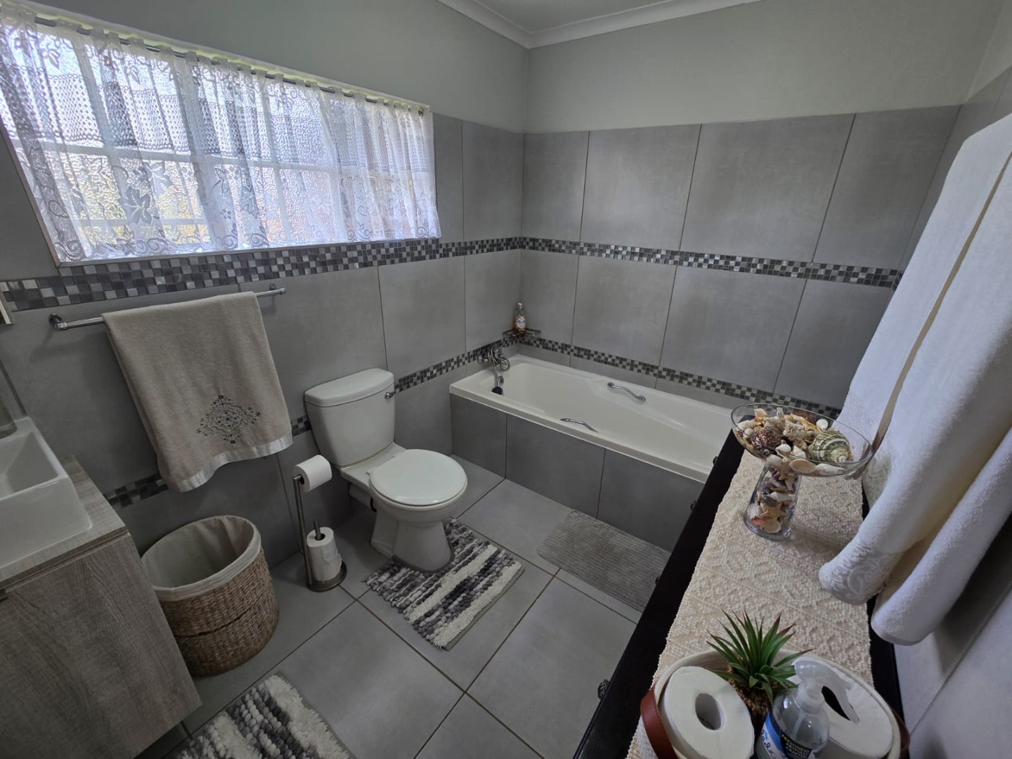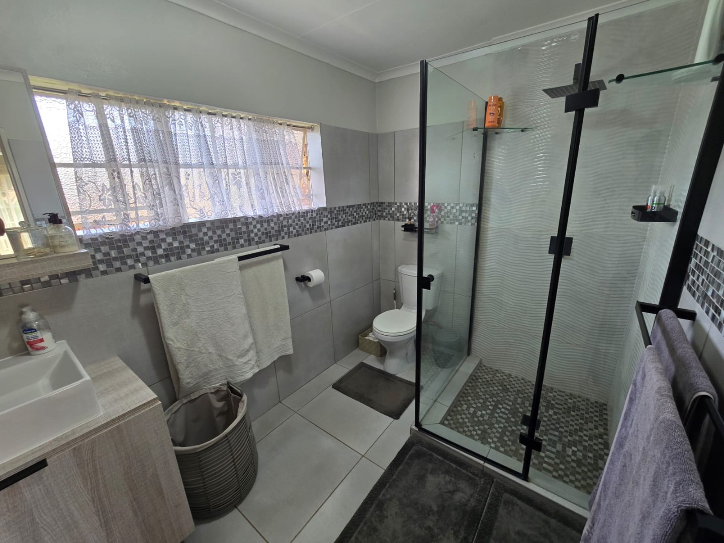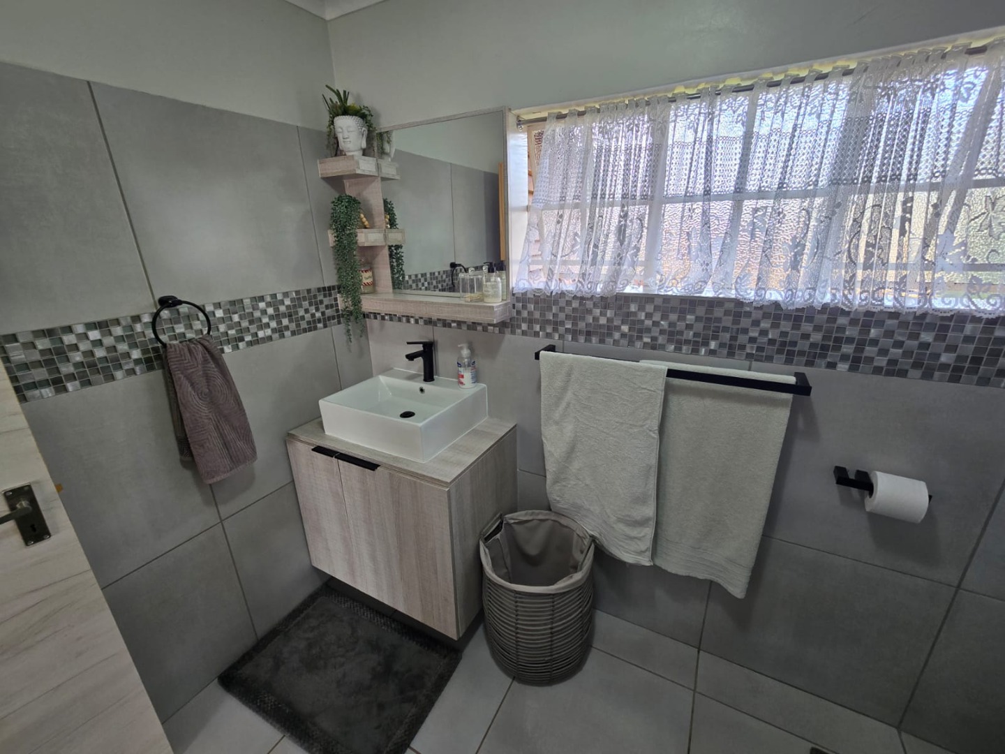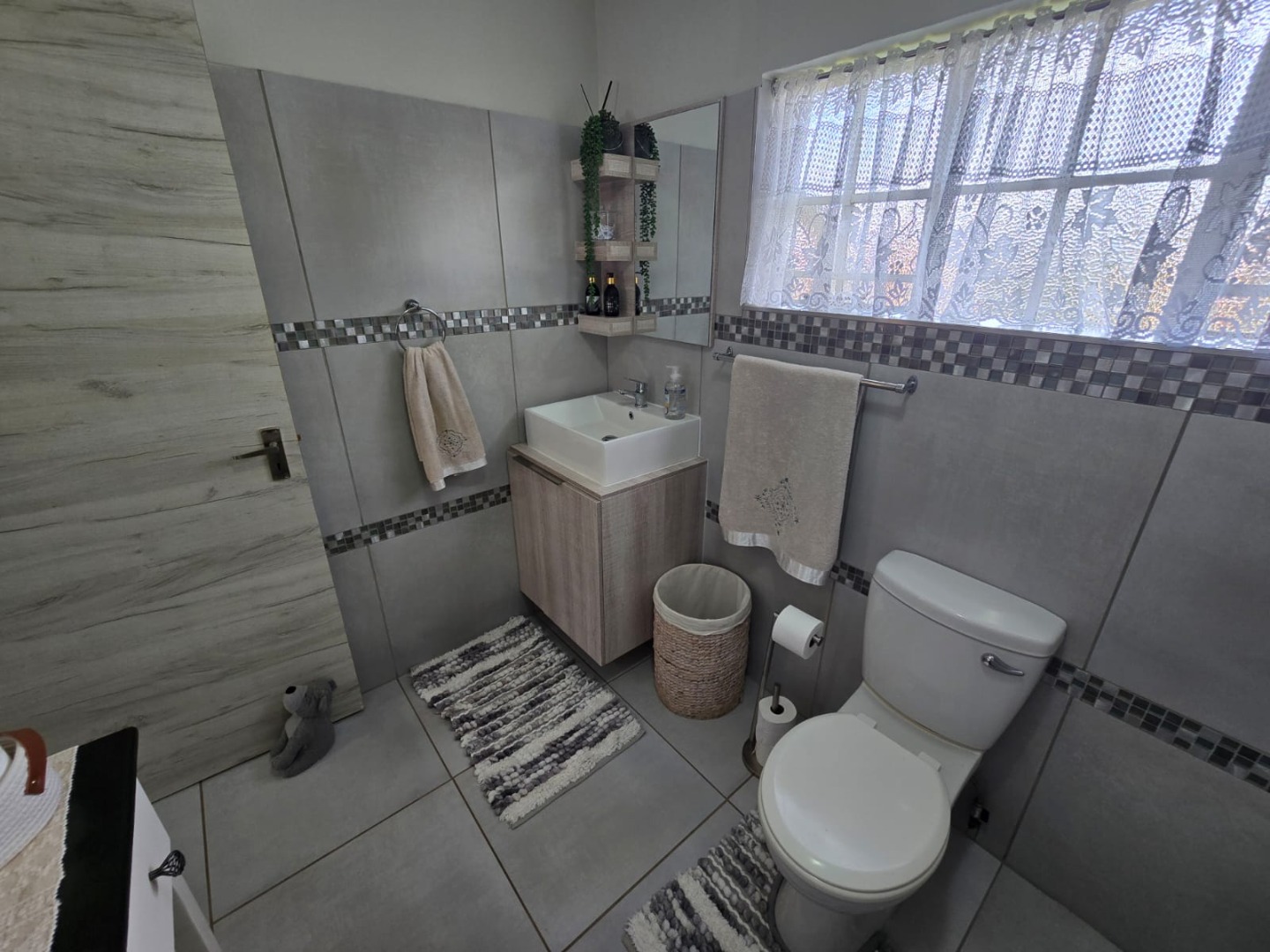 Step outside to the private patio, complete with a built-in braai, ideal for weekend gatherings or quiet evenings enjoying the outdoors. Rain water is gathered in a JoJo tank with a pump, offering peace of mind and self-sufficiency. Energy efficiency is a highlight, with a solar geyser equipped solar panels included in the price, plus additional solar panels, two batteries, and an inverter, helping reduce electricity costs and supporting sustainable living. This property is equipped with outside security beams.
