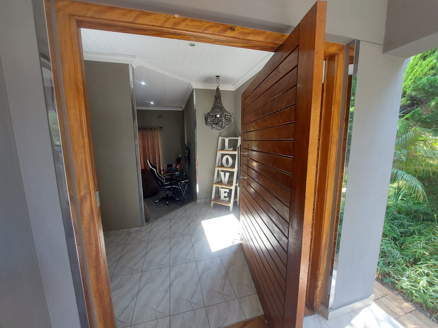 Nestled within the serene and established community of Lydenburg, this expansive residential property offers a harmonious blend of modern living and abundant outdoor space. From the moment you arrive, the property’s kerb appeal is evident, featuring a contemporary light grey exterior complemented by elegant double wooden garage doors and a meticulously paved driveway. Lush, mature tropical-style landscaping, complete with towering palm trees, creates a private and inviting atmosphere, setting the stage for a truly exceptional home.