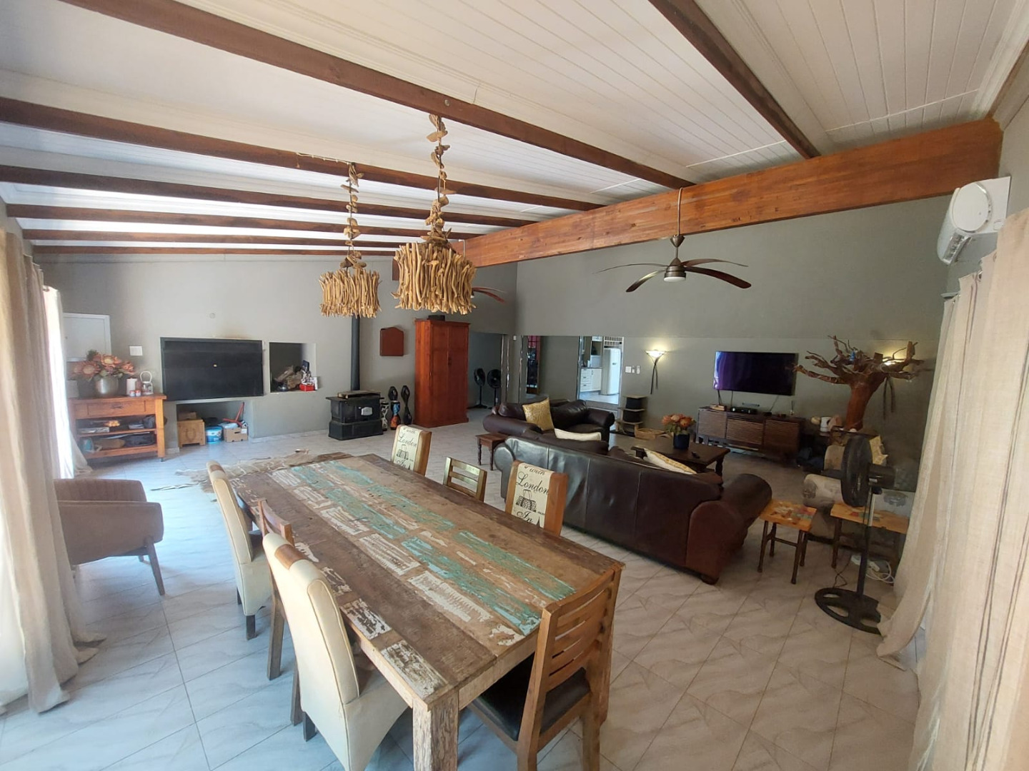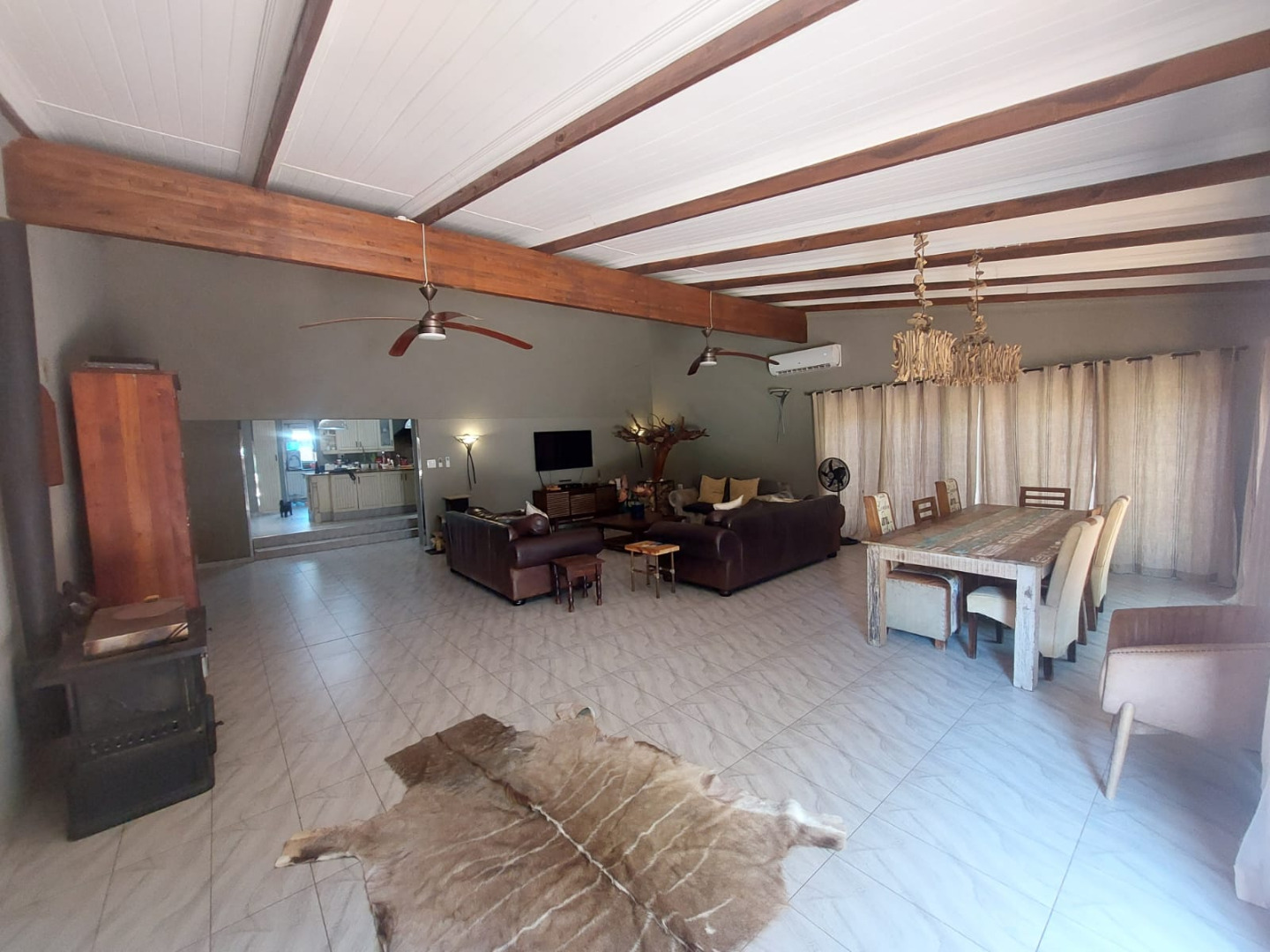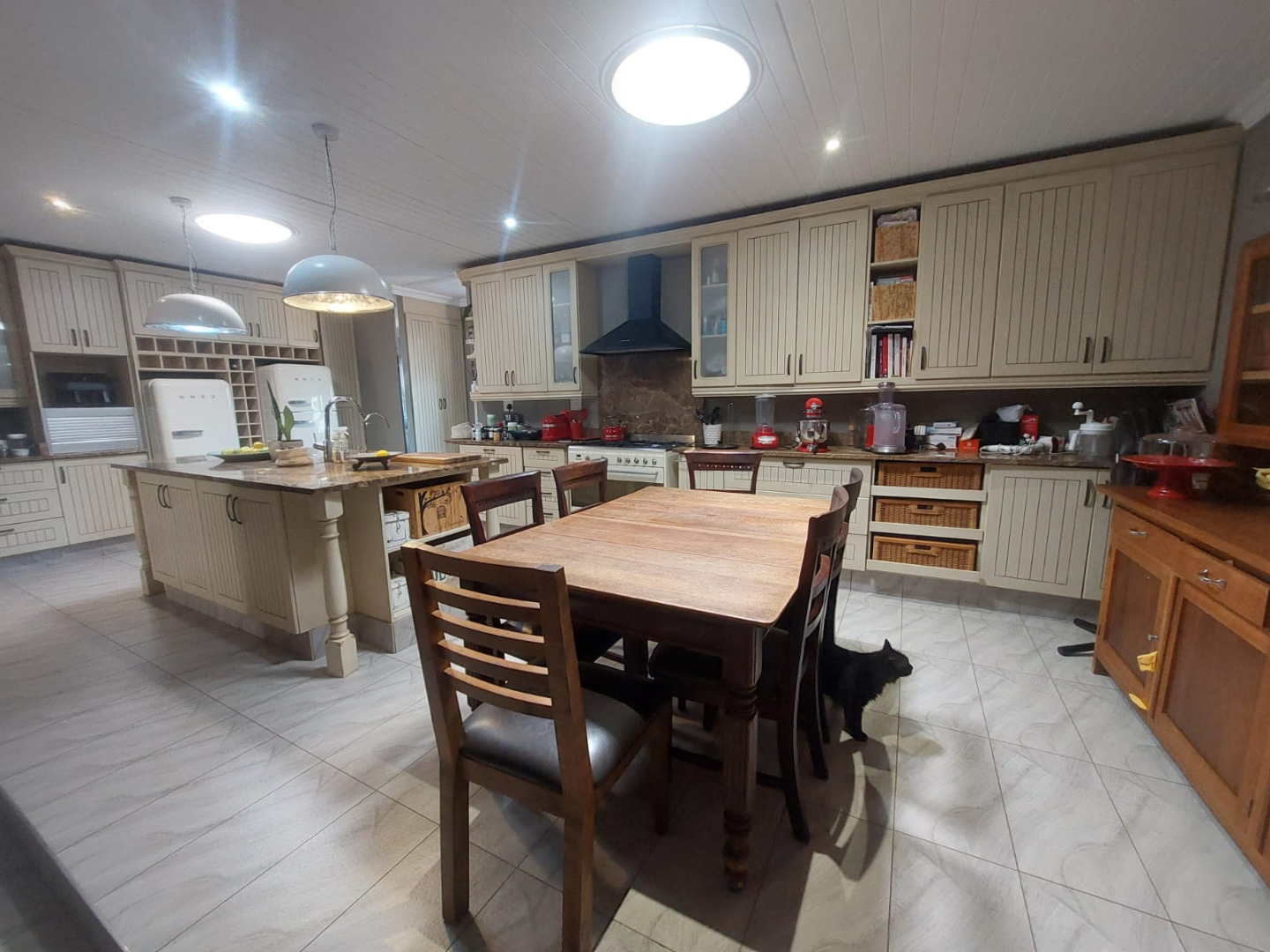 Spanning an impressive 555 square metres under roof on a generous 2000 square metre erf, this residence is designed for comfort and versatility. The interior boasts two spacious lounges, providing ample room for relaxation and entertainment, alongside a dedicated dining room perfect for family meals and gatherings. The well-appointed kitchen serves as the heart of the home, catering to all culinary needs. For year-round comfort, the property is equipped with air conditioning, while a charming fireplace adds warmth and ambiance during cooler evenings. A convenient guest toilet further enhances the functionality of the main living areas.