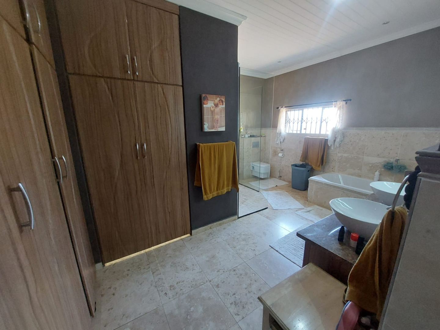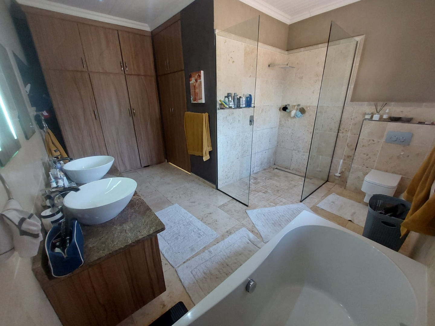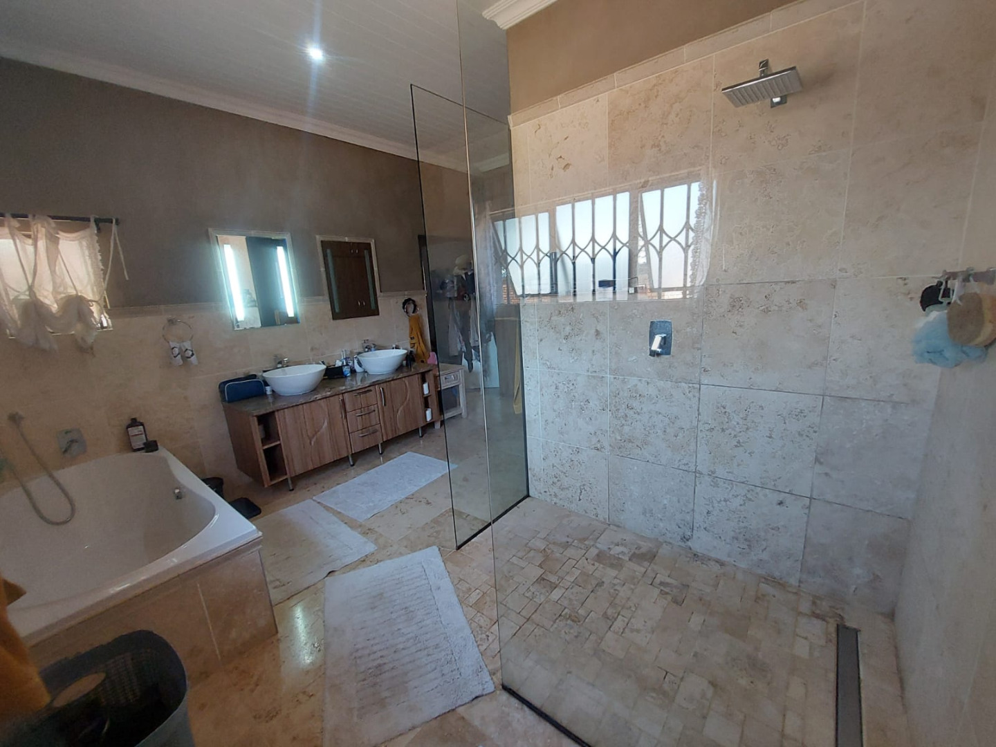 Spanning an impressive 555 square metres under roof on a generous 2000 square metre erf, this residence is designed for comfort and versatility. The interior boasts two spacious lounges, providing ample room for relaxation and entertainment, alongside a dedicated dining room perfect for family meals and gatherings. The well-appointed kitchen serves as the heart of the home, catering to all culinary needs. For year-round comfort, the property is equipped with air conditioning, while a charming fireplace adds warmth and ambiance during cooler evenings. A convenient guest toilet further enhances the functionality of the main living areas.
