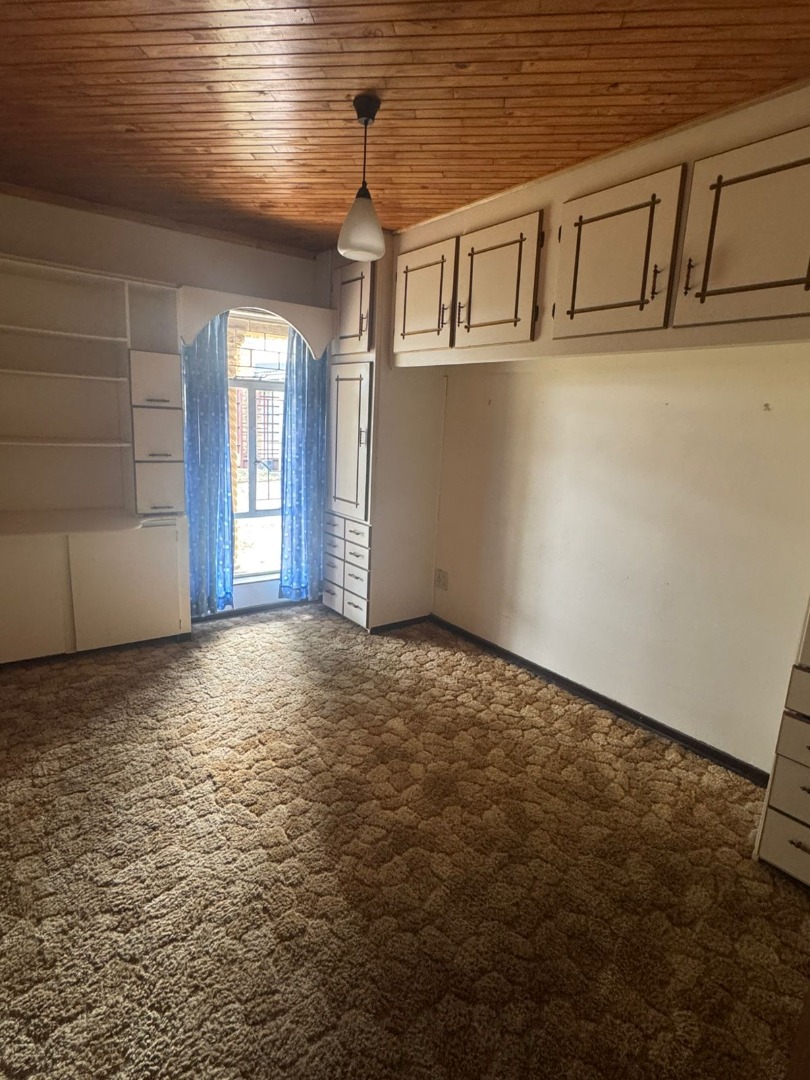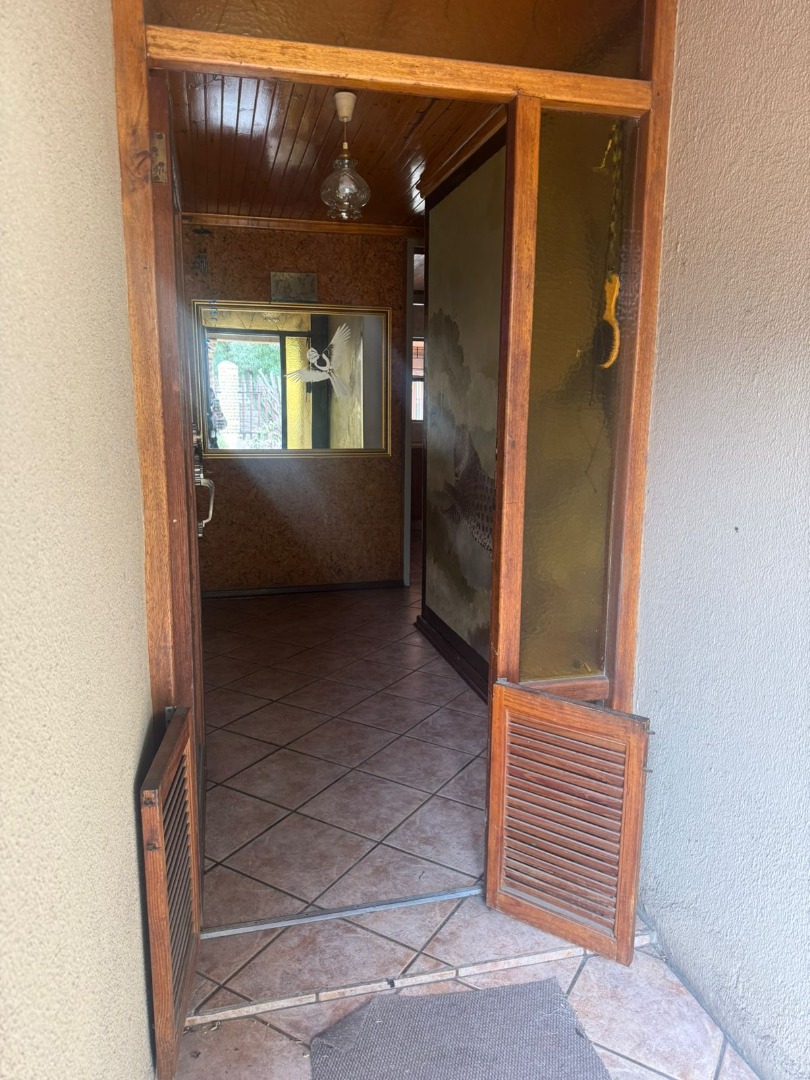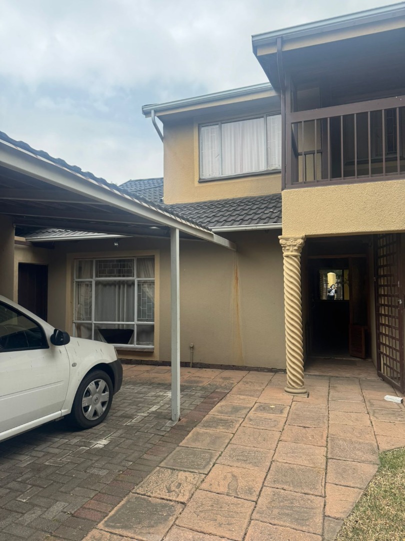 This inviting two-story residence in Secunda offers a blend of functional living and unique character, ideal for families seeking space and convenience. The property presents a light-colored exterior with a tiled roof, featuring a welcoming paved driveway and a carport for sheltered parking. Decorative spiral columns add a distinctive architectural touch, while security bars on windows and an entrance gate provide enhanced safety. A paved patio area on the ground floor offers a pleasant spot for outdoor relaxation.