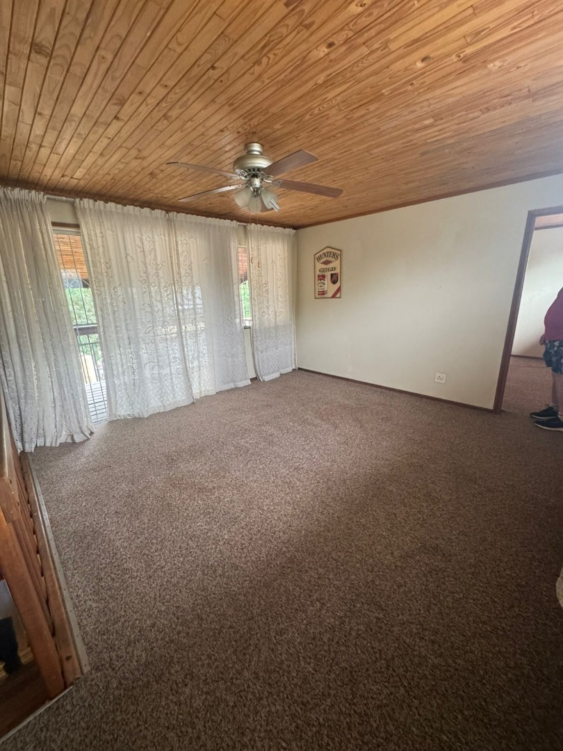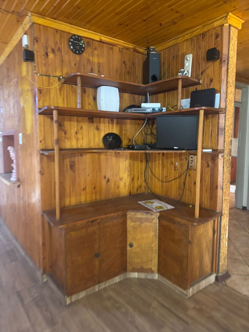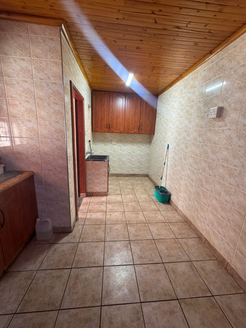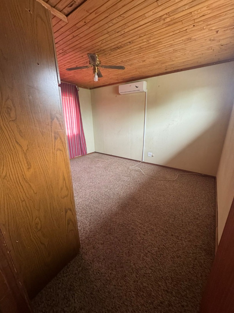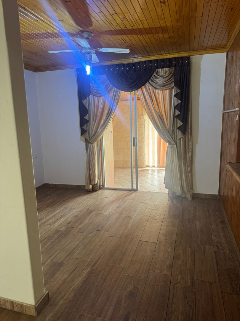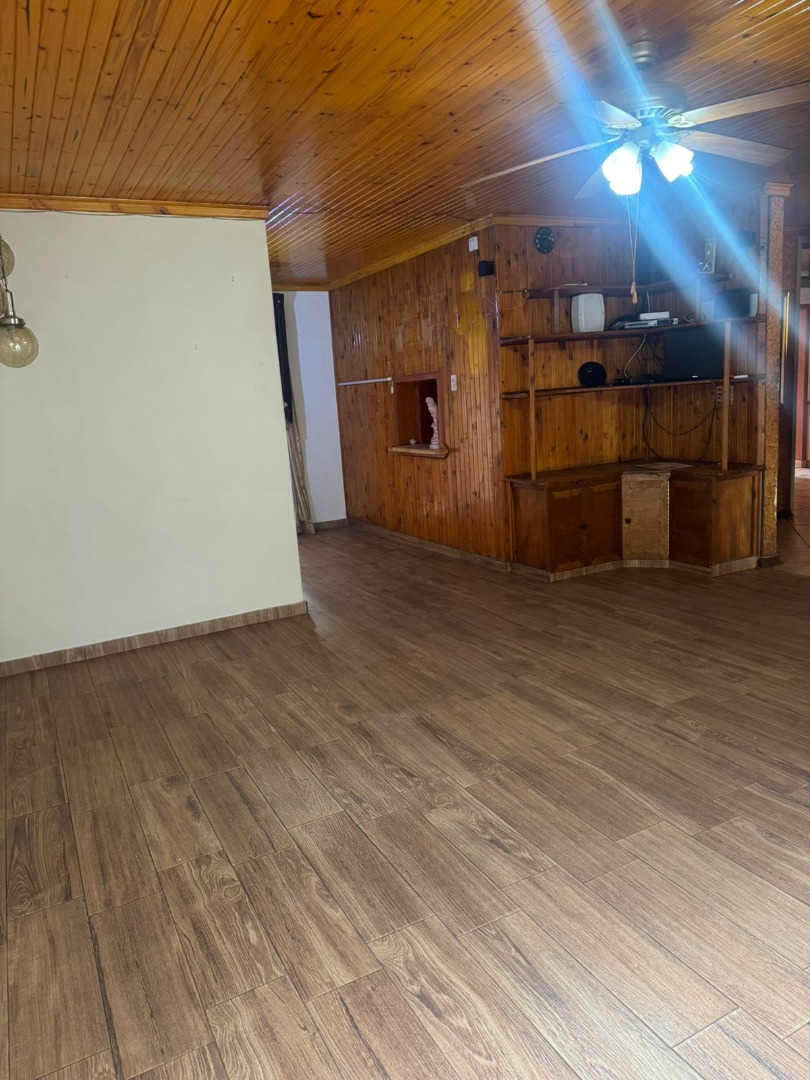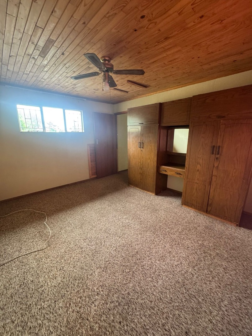 Step inside to discover a home designed for comfortable living. The interior boasts a practical layout with one lounge, a dedicated dining room, and a well-appointed kitchen. Throughout the living areas, you'll find durable wood-look tiled flooring and warm wooden panel ceilings, adding character to the space. Ceiling fans are installed for comfort and air circulation, complementing the natural light from the windows.