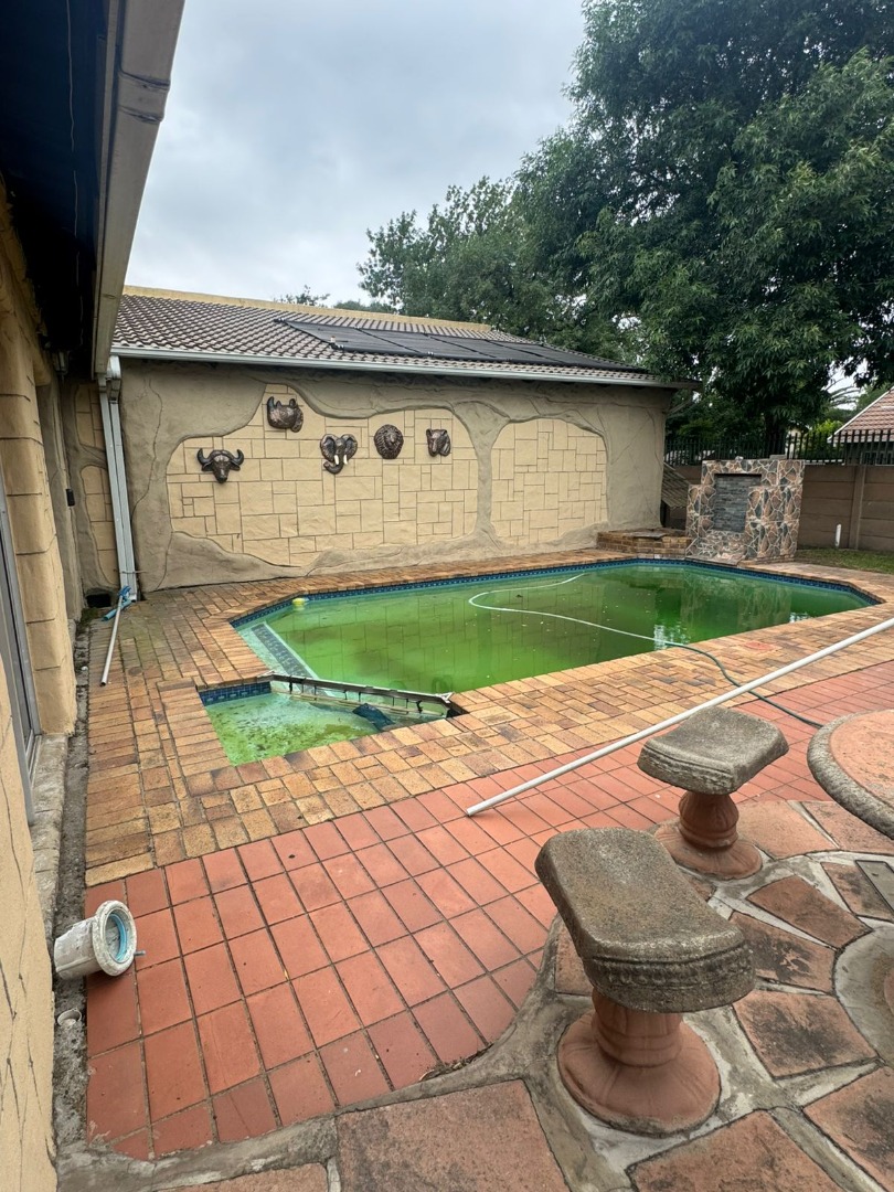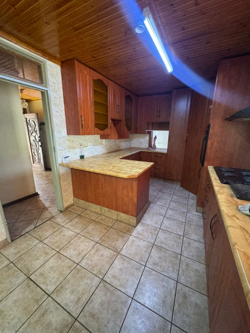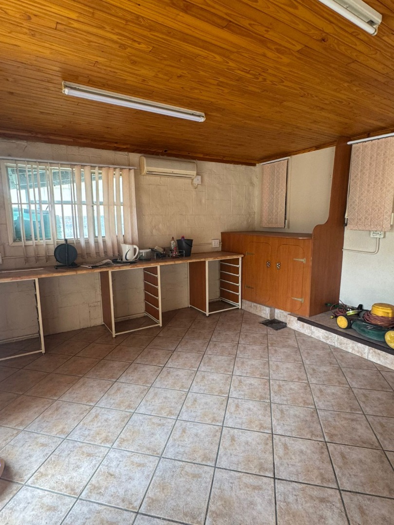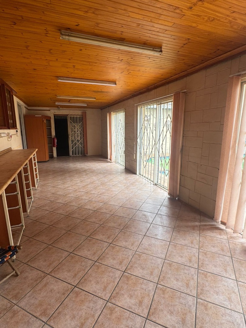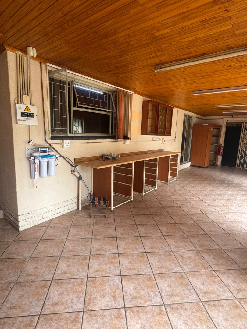 Outdoor amenities include a generous 825 sqm erf, offering potential for gardening or further landscaping. A standout feature is the impressive eight garages, complemented by an additional parking space, providing extensive secure storage for vehicles, hobbies, or business needs. The property's secure perimeter, including security bars and an access gate, contributes to peace of mind.