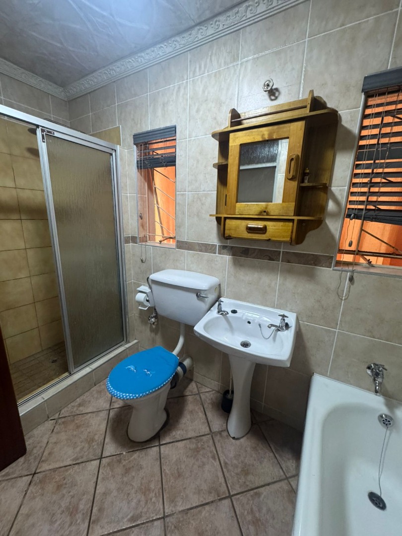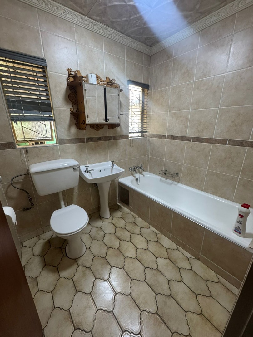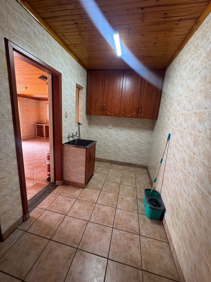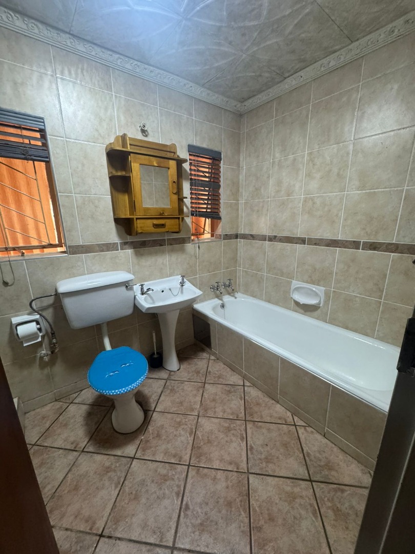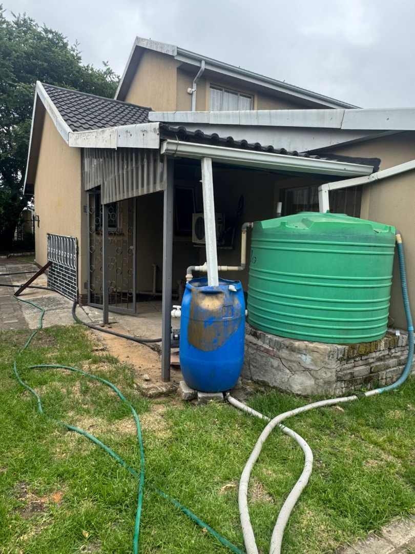 Outdoor amenities include a generous 825 sqm erf, offering potential for gardening or further landscaping. A standout feature is the impressive eight garages, complemented by an additional parking space, providing extensive secure storage for vehicles, hobbies, or business needs. The property's secure perimeter, including security bars and an access gate, contributes to peace of mind.
