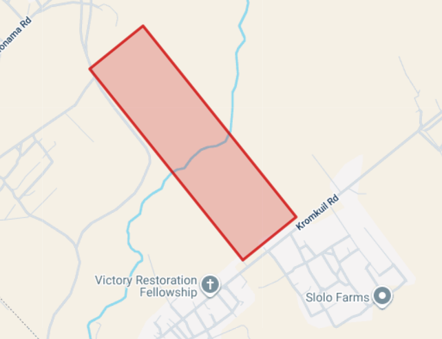 The property boasts direct access from both Kromkuil Road and Konoma Road, ensuring excellent connectivity and ease of entry for future residents or construction. A natural river or stream gracefully traverses the land, adding a unique ecological feature and enhancing its aesthetic appeal, offering possibilities for tranquil waterside settings. The largely flat terrain simplifies construction, while existing scattered trees provide natural shade and landscaping possibilities, allowing for flexible site planning.