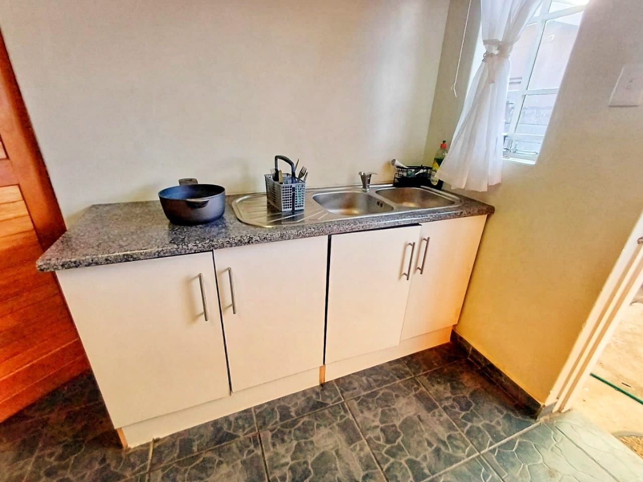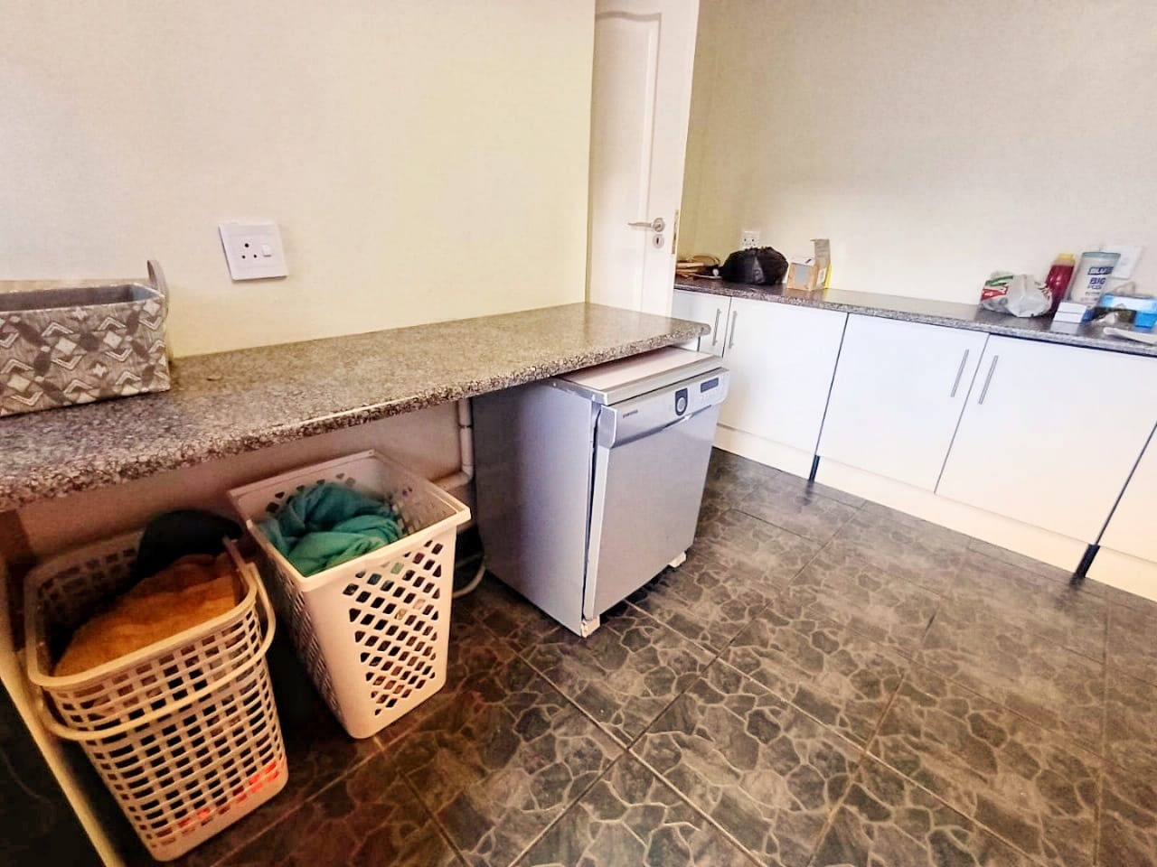 - Spacious kitchen with built-in cupboards and ample counter space.