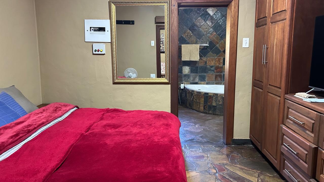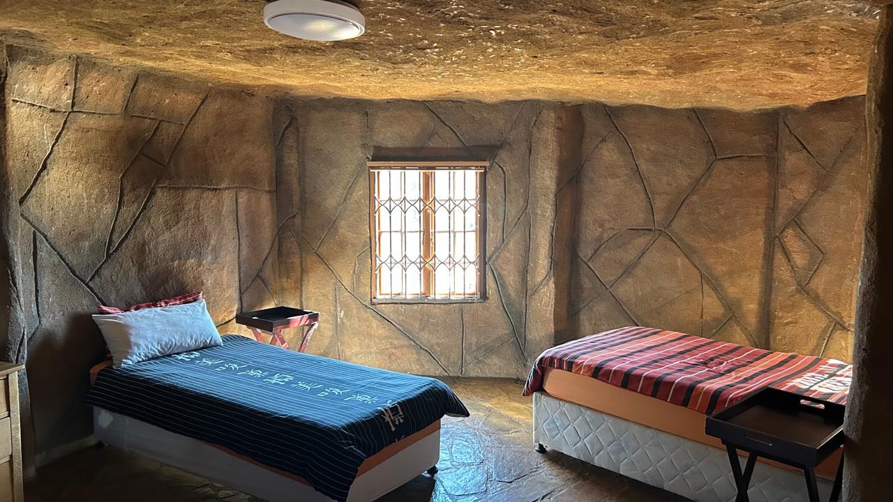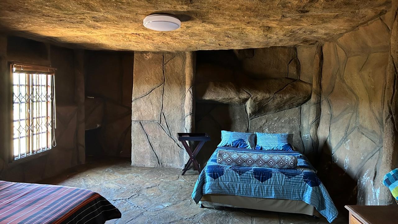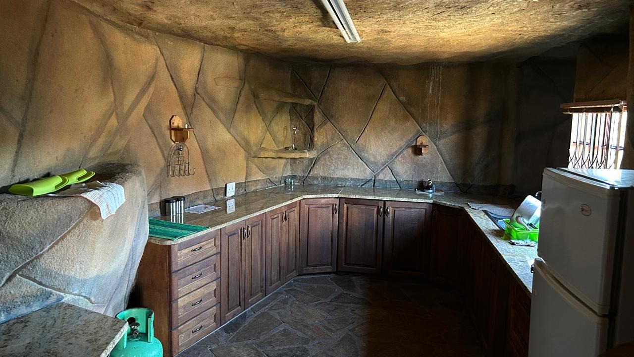 High up in the mountain is a serene home overlooking the beautiful cliffs. It boasts a living area, kitchen and two en-suite bedrooms . The outside Deck with a boma