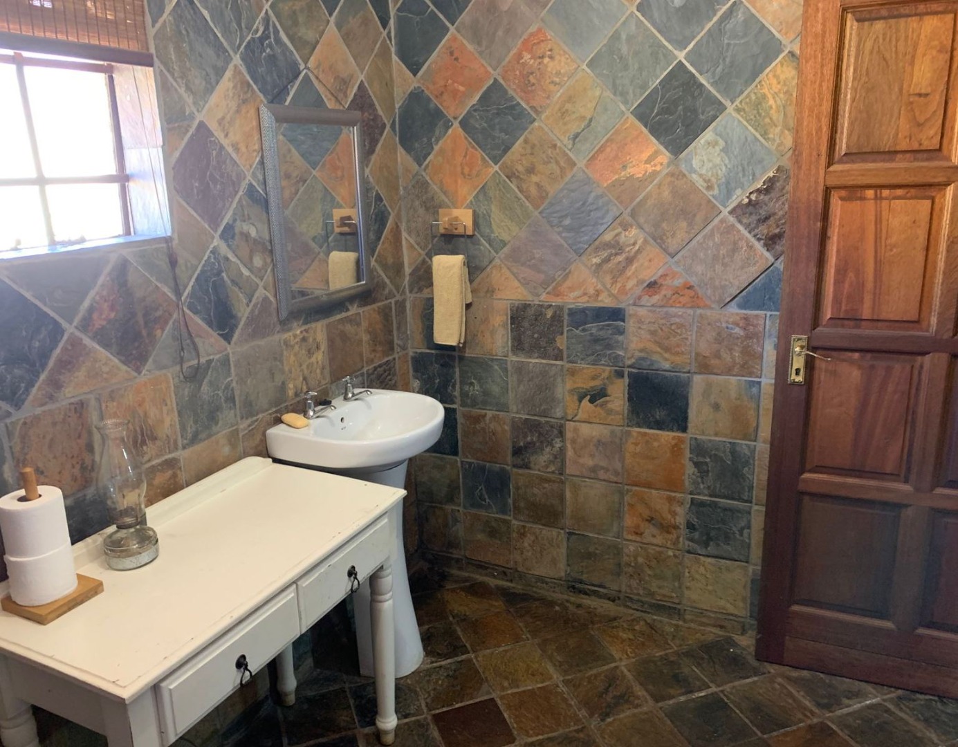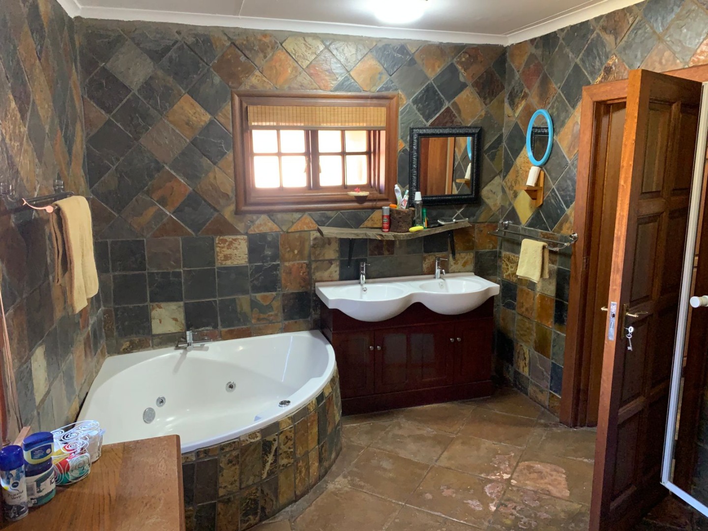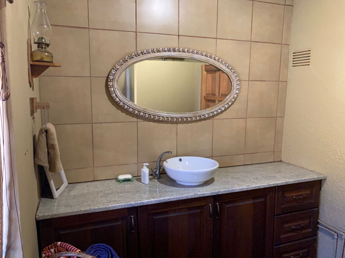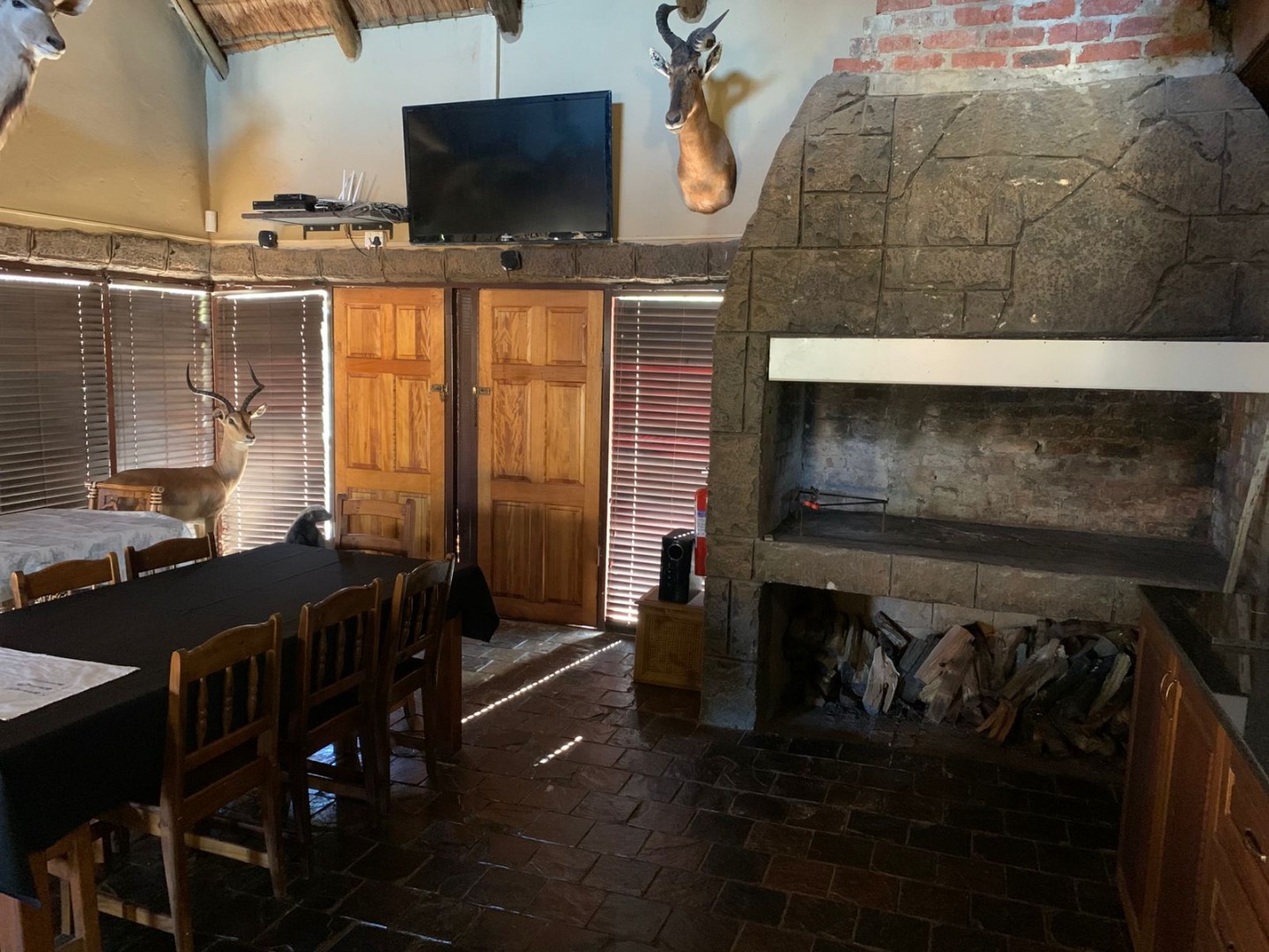 The farm house offers 3 spacious living areas, a kitchen, 3 bedrooms and 3 bathrooms.