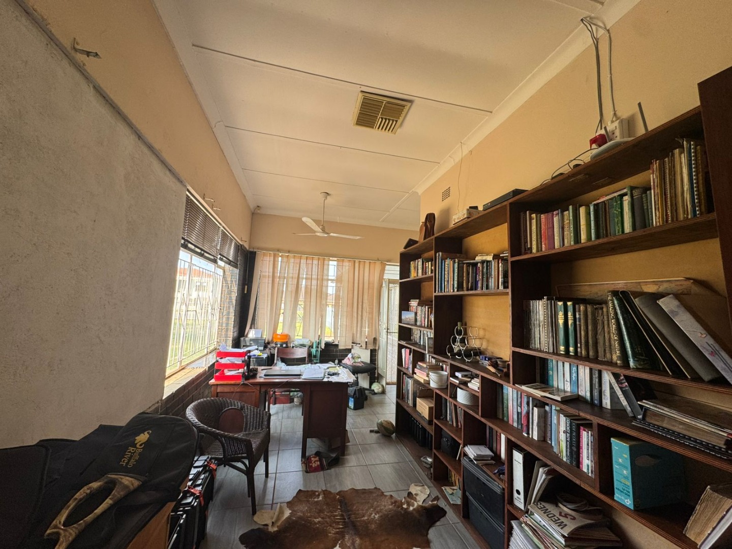There is a second full bathroom (bath, shower, basin), plus a separate guest toilet. A tiled office with ceiling fan provides the ideal work-from-home space.