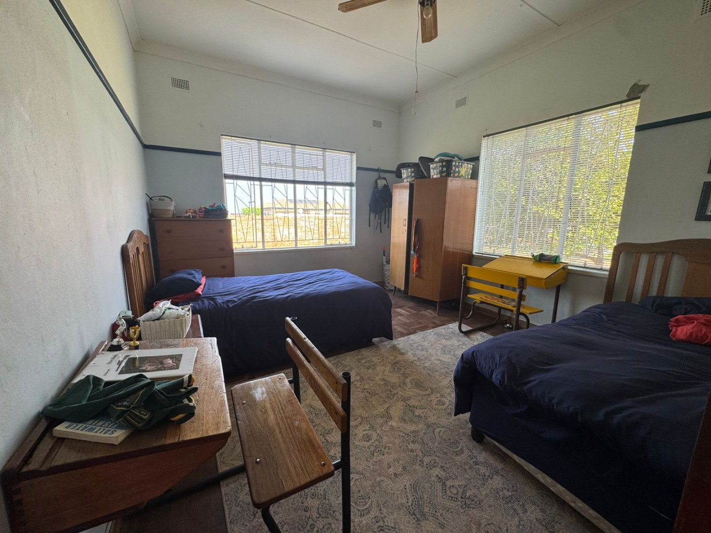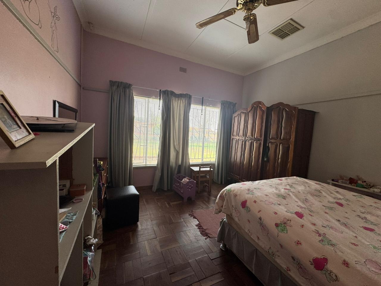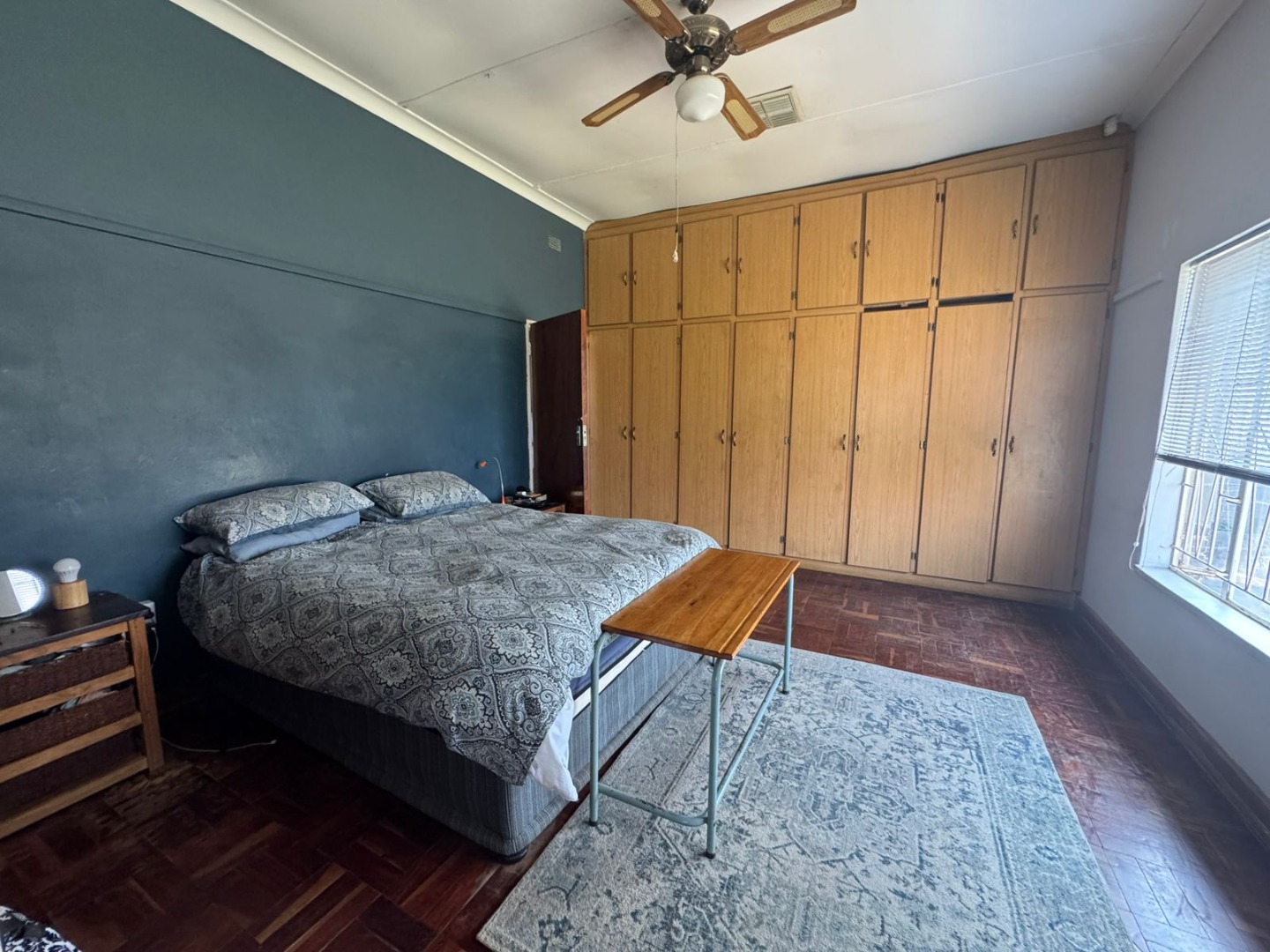 Bedroom 3 with wooden floors and ceiling fan