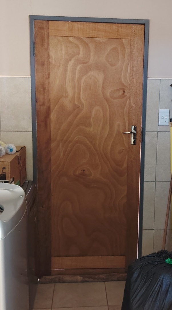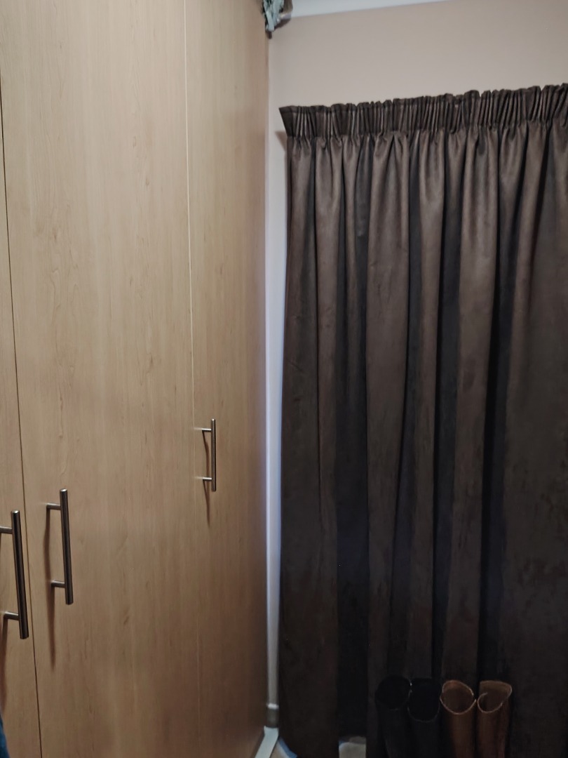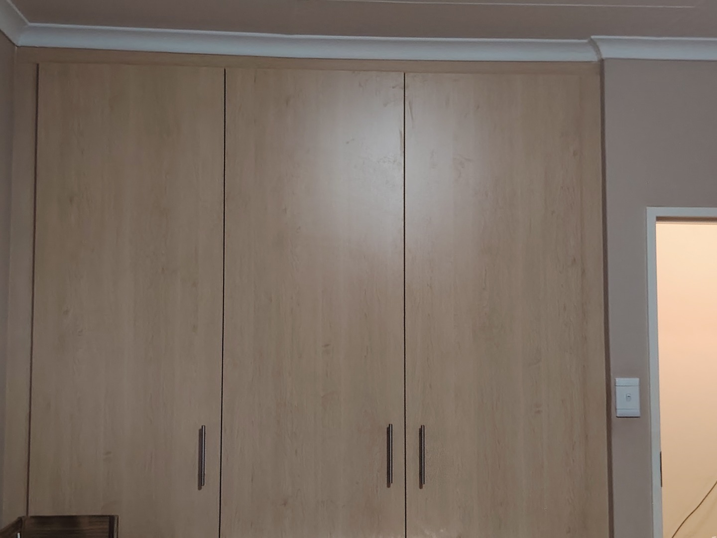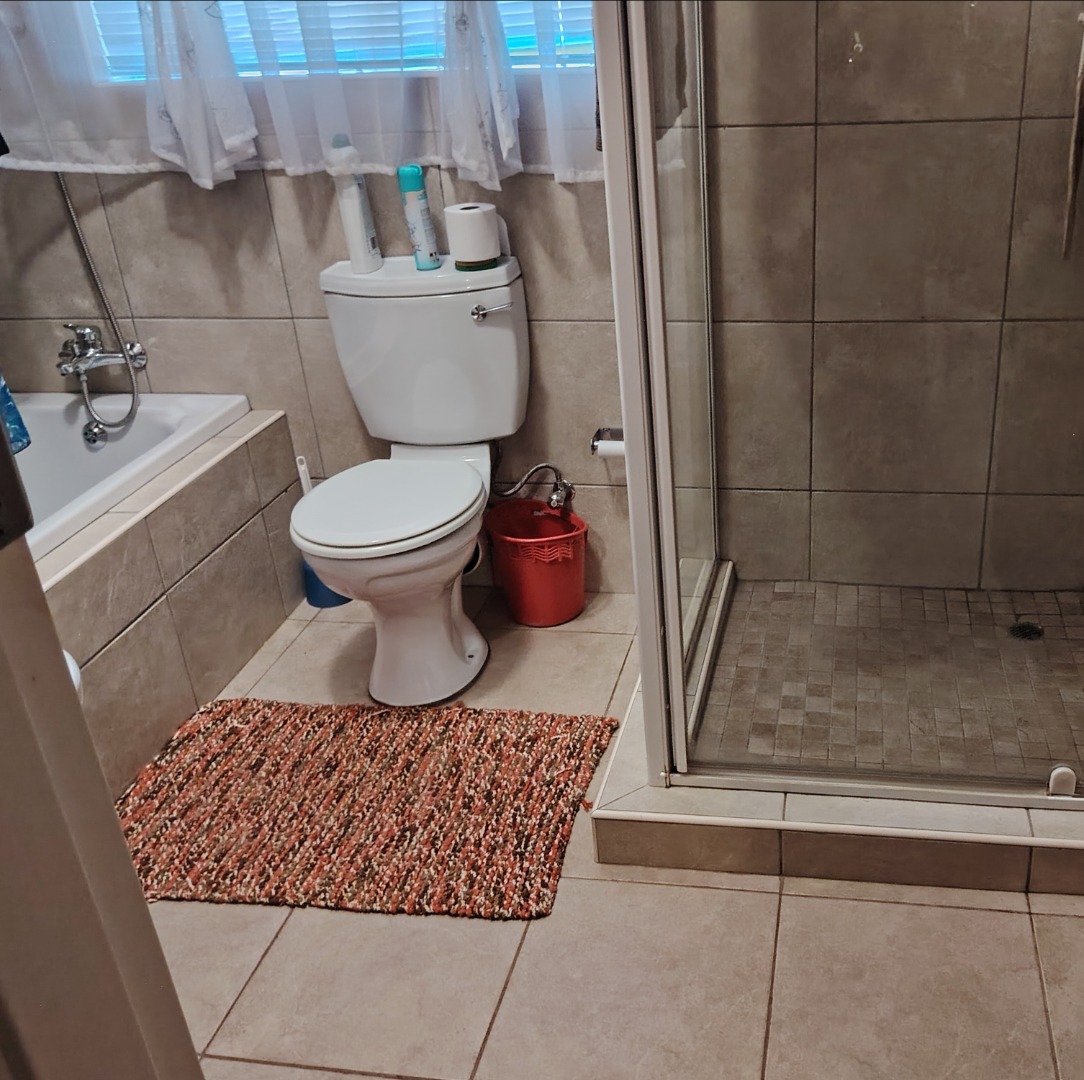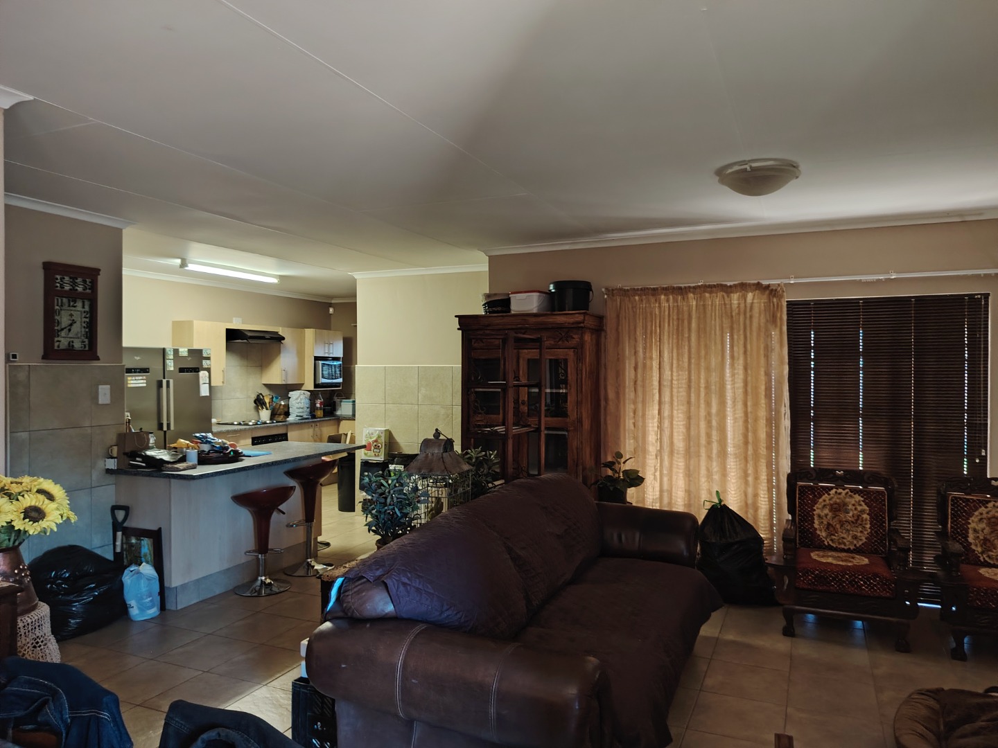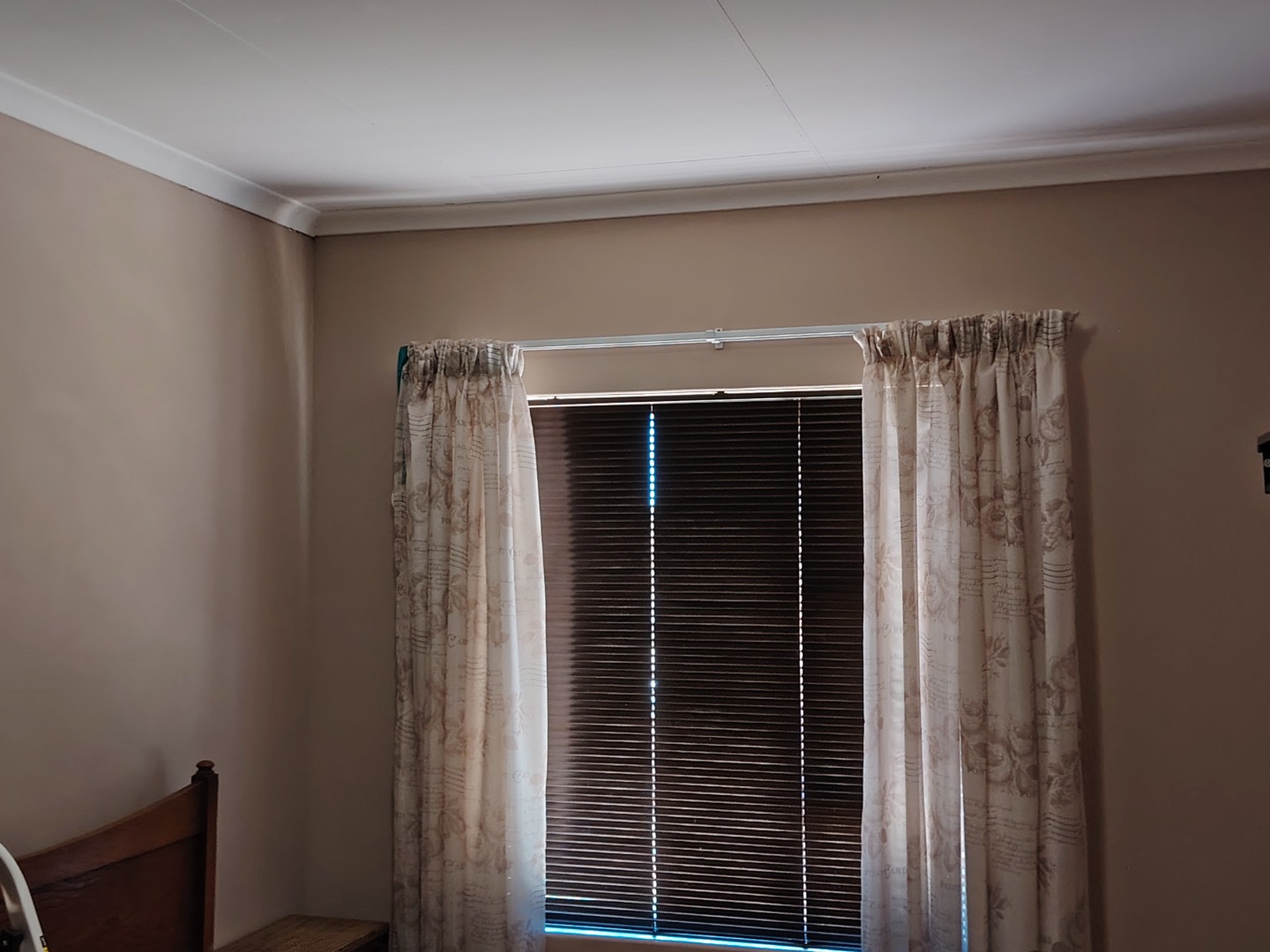 Accommodation includes three comfortable bedrooms, with the main bedroom featuring an en-suite bathroom, alongside a second well-appointed bathroom. For enhanced security, the property is fitted with a security gate on the front door and burglar bars on windows. Sustainability is addressed with an installed solar water heater, contributing to energy efficiency.