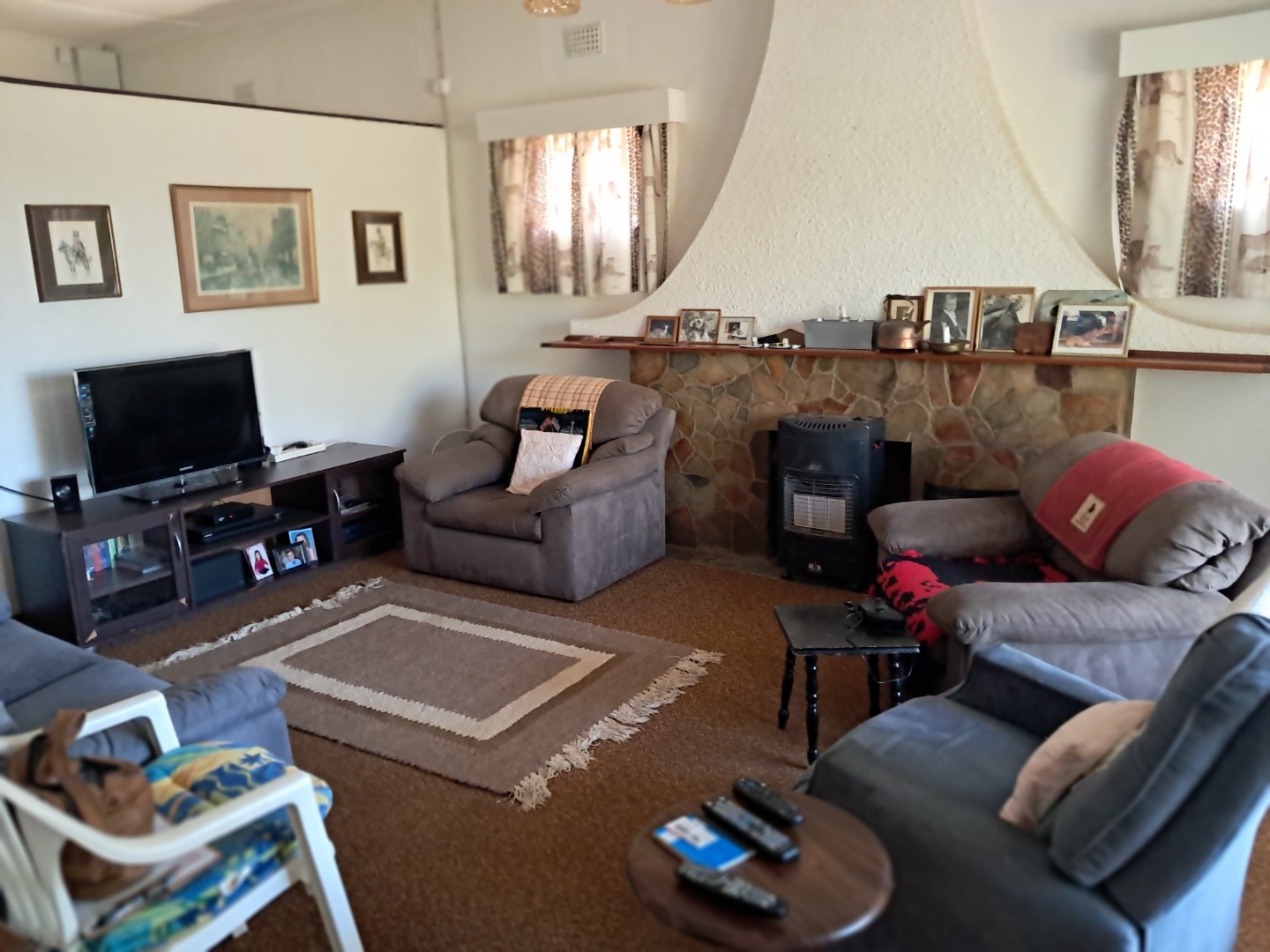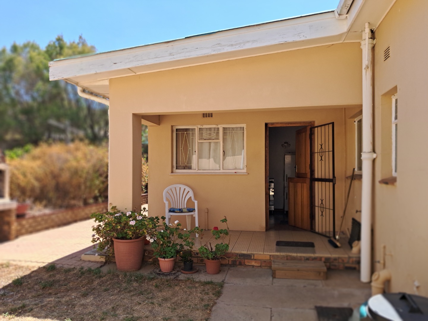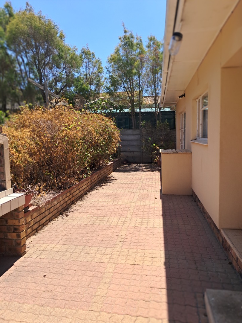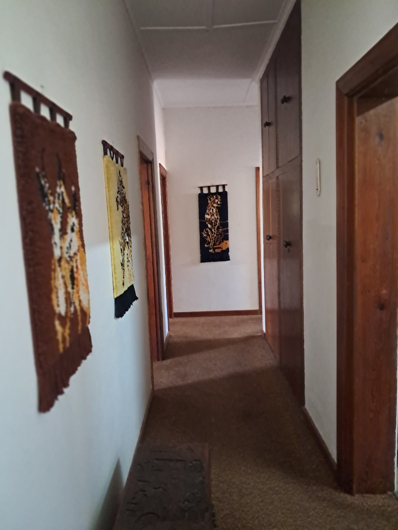 This affordable property is situated on a large plot and boasts an established garden with an irrigation system, lushes' trees and valuable cycads. The interior features a spacious entrance hall, expansive living area with fireplace, spacious dining room area or office space, a country-style kitchen fitted with an oven, stove and gas stove. Additional amenities include laundry facilities, a full bathroom with separate toilet for guests and extra linen cupboards down the hallway. There is an outside braai area, single garage, storage room, carport and plenty of off-street parking