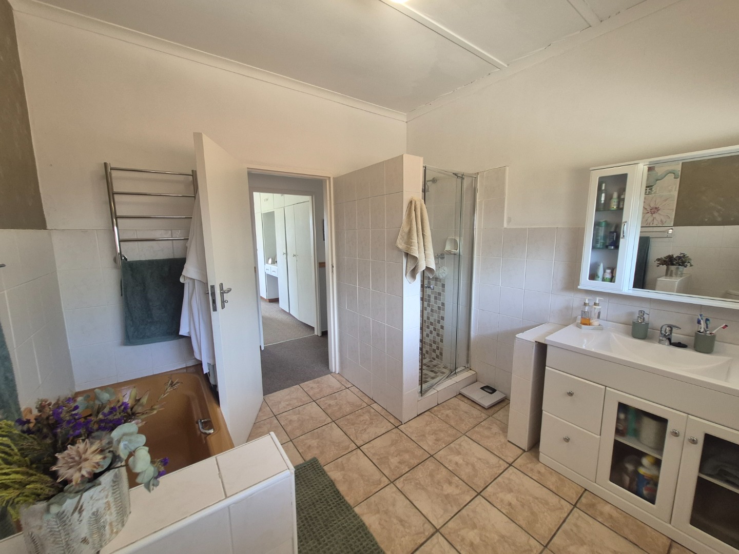 The accommodation comprises three comfortable bedrooms, with the main bedroom benefiting from a private en-suite bathroom. An additional full bathroom and a guest toilet cater to the needs of residents and visitors alike. Practical storage solutions are integrated throughout the home, enhancing functionality.