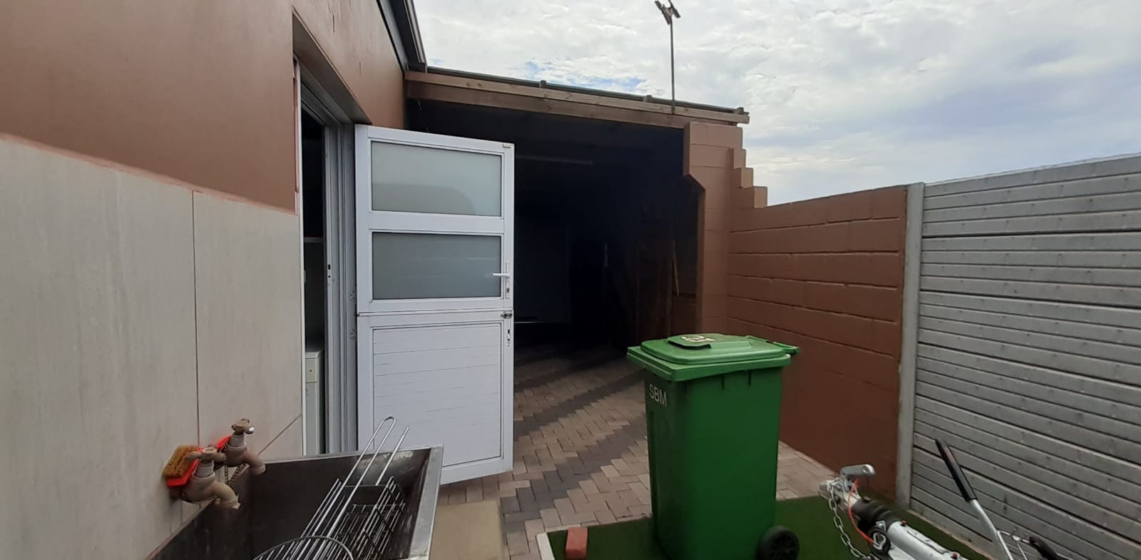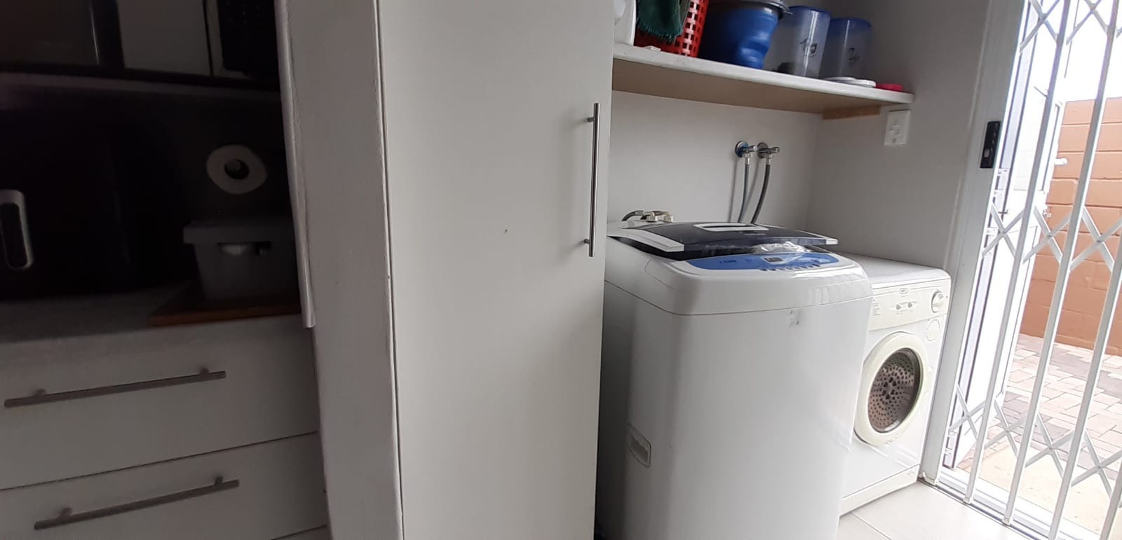 Additional highlights include double garages, a paved driveway and outdoor areas for low-maintenance living, and a solar power system with inverter and battery for energy efficiency and peace of mind. Excellent security features such as an alarm system, burglar bars, and a security gate complete this exceptional offering.