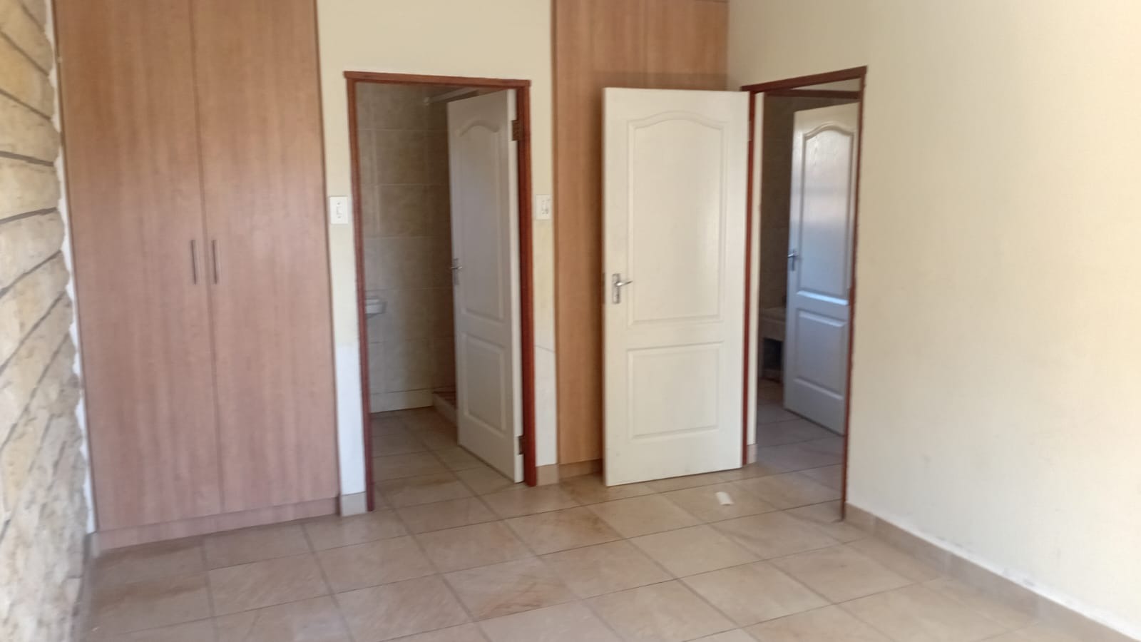 This inviting 2-bedroom, 1-bathroom rental property in Ladybrand offers a comfortable living space with potential for personalization. The interior features tiled flooring throughout, ensuring easy maintenance. The layout includes a dedicated lounge area and a functional kitchen, providing essential spaces for daily living. Bedrooms are equipped with practical built-in wardrobes, offering convenient storage solutions. One room boasts a unique faux brick accent wall, adding character to the space.