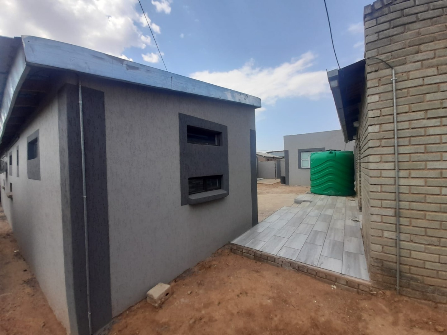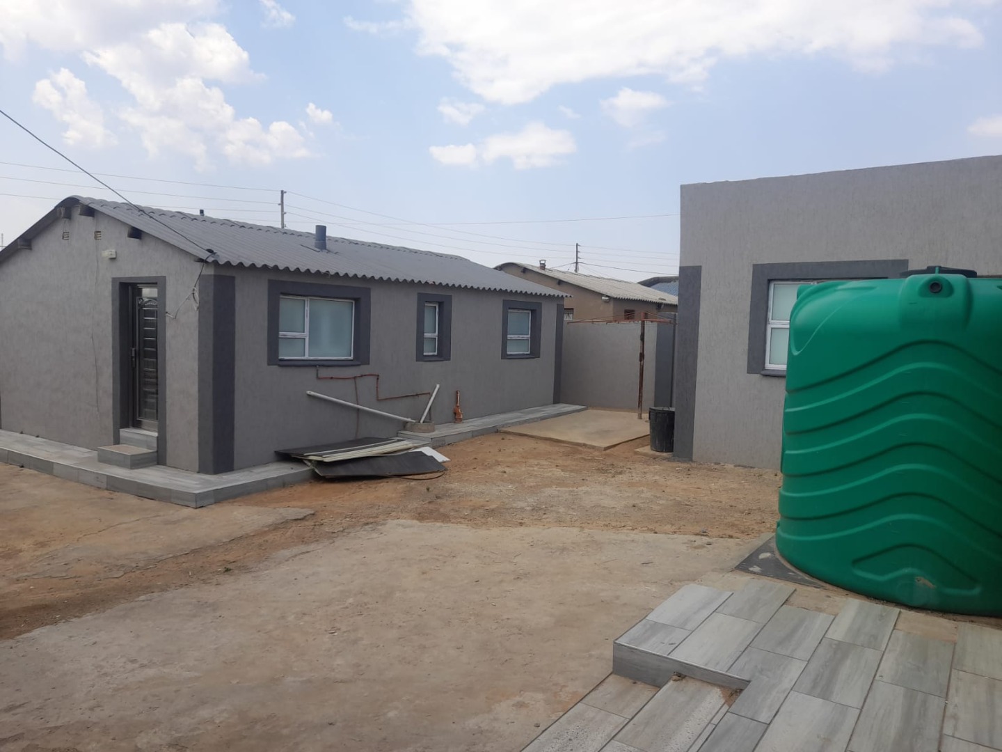 The property features a secure perimeter with fencing and an access gate with multiple modern structures on the 610 sqm erf and a large water storage tank, there's exciting potential for multi-unit rental.