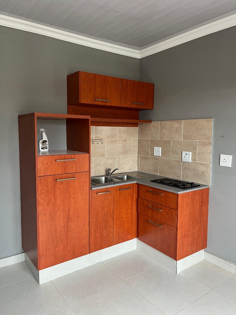 Discover modern and secure living in this well-appointed 1-bedroom rental property located in Mabopane. Spanning a comfortable 68 square metres of floor space on a 350 square metre erf, this residence is designed for practicality and ease. The interior features a single lounge area and a compact, contemporary kitchen equipped with ample wood-grain cabinetry, an integrated hob, and a double sink, complemented by a tiled backsplash for easy maintenance. The property boasts clean, tiled flooring throughout and freshly painted walls, creating a neat and inviting atmosphere.
