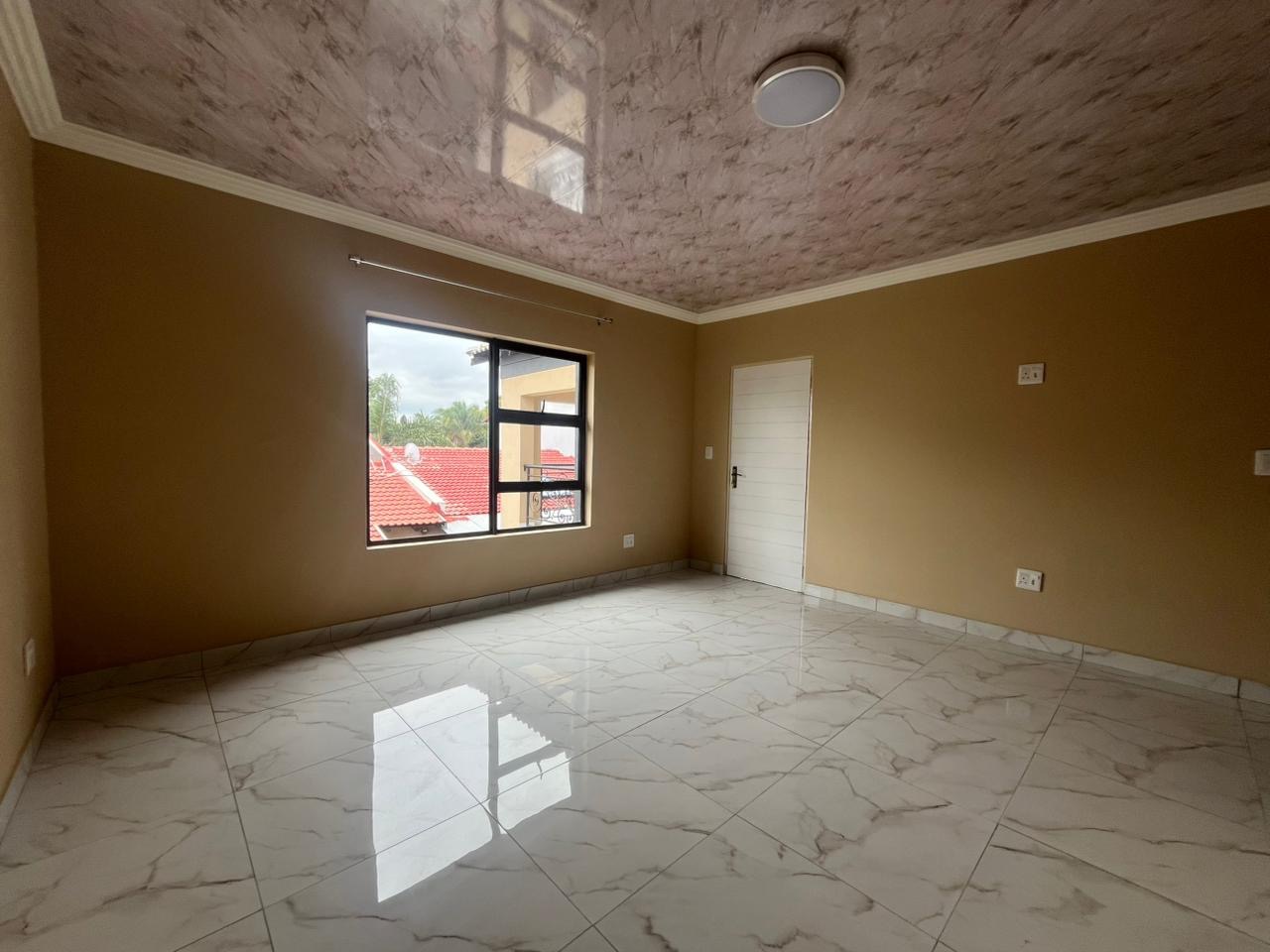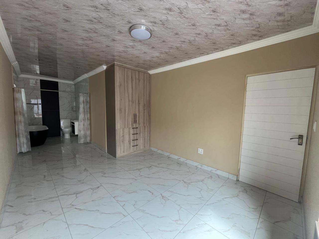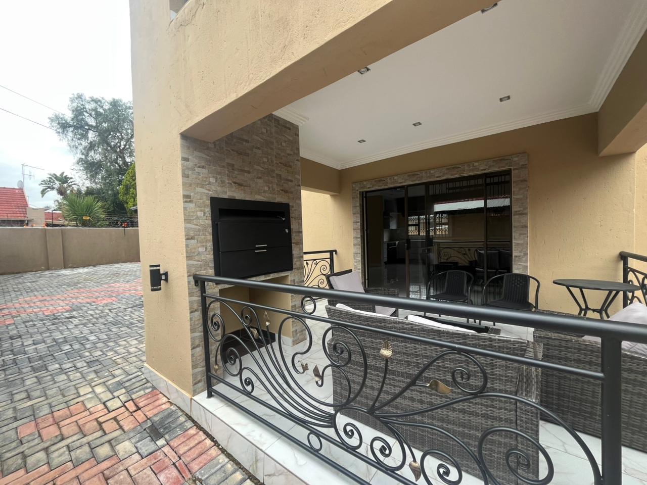 This spacious double-storey freestanding home on Mias Street offers comfortable, well-designed living in the heart of Garsfontein. The property features 4 generously sized bedrooms, all en-suite, providing privacy and convenience for each occupant. A separate visitor’s toilet adds practicality for guests, while the open-plan living areas flow seamlessly into a modern kitchen fitted with a gas stove—perfect for uninterrupted cooking. The home is neatly finished with tiled flooring throughout, enjoys great natural light, and opens out to a covered patio ideal for entertaining. Additional features include a double lock-up garage, a double carport, prepaid electricity, and the added benefit of water included in the rent.