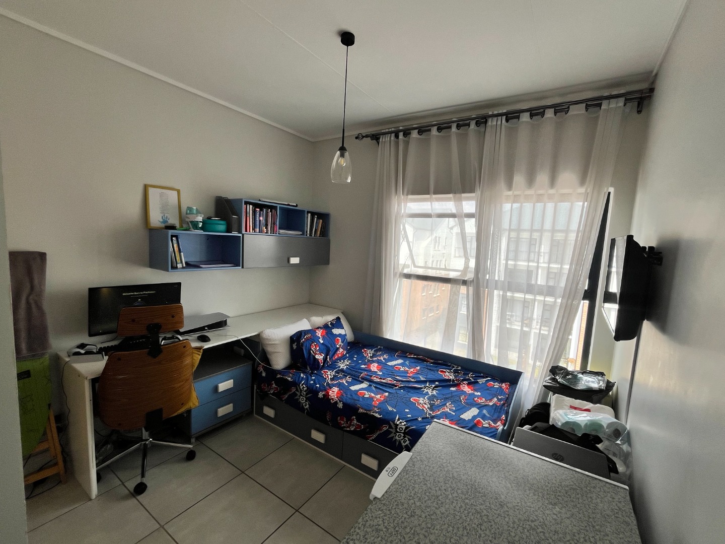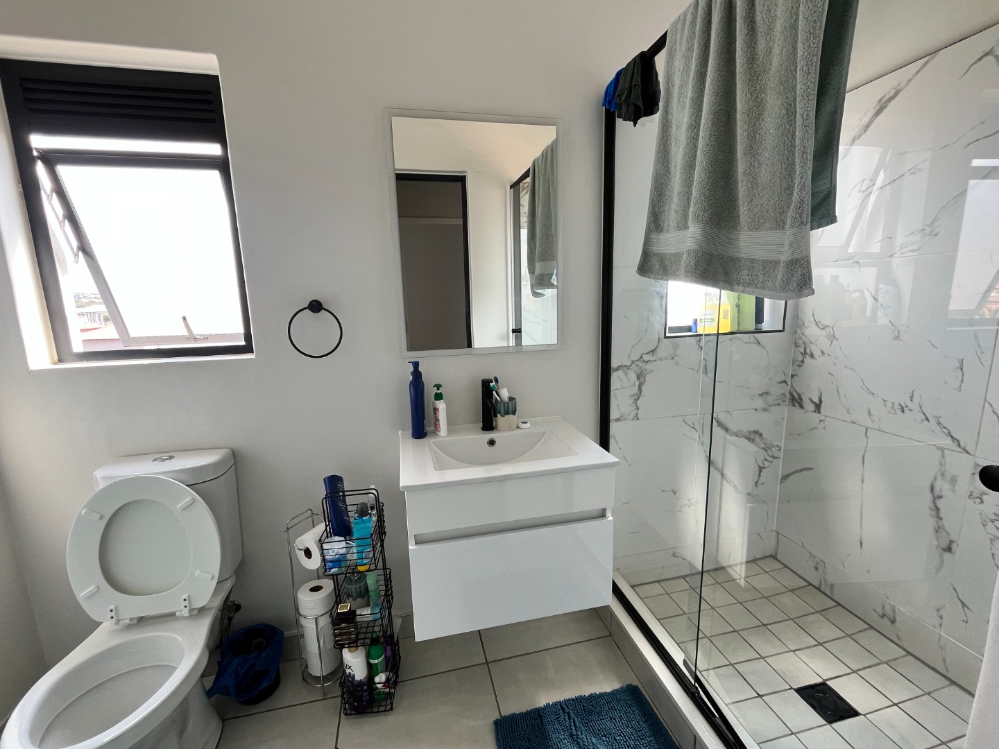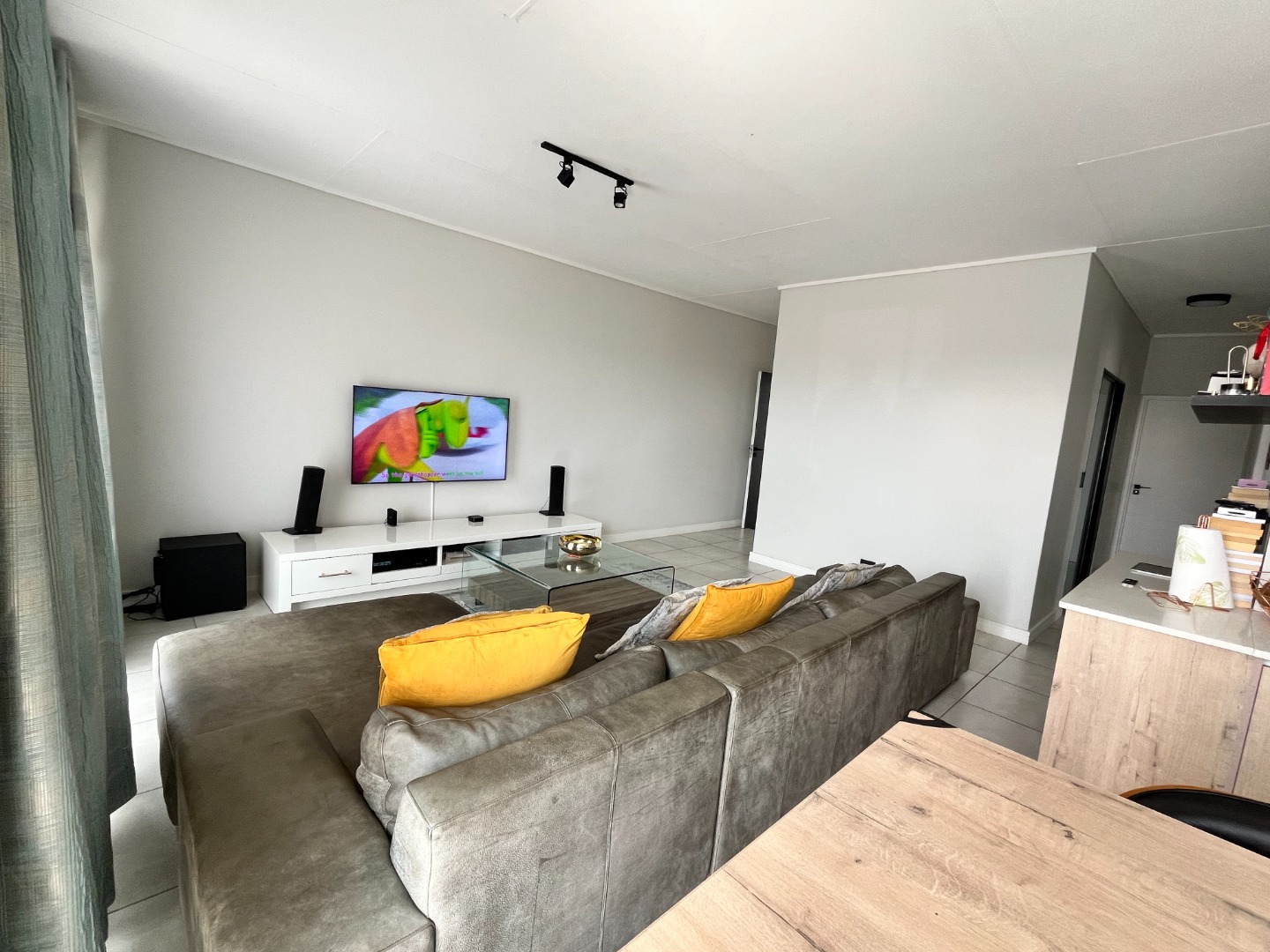 The modern open-plan kitchen is fitted with quality finishes and ample cupboard space, seamlessly flowing into a bright and airy lounge area that opens onto a private balcony—ideal for relaxing or entertaining while enjoying the elevated top floor views. The apartment is designed to maximize natural light, creating a warm and inviting atmosphere throughout.