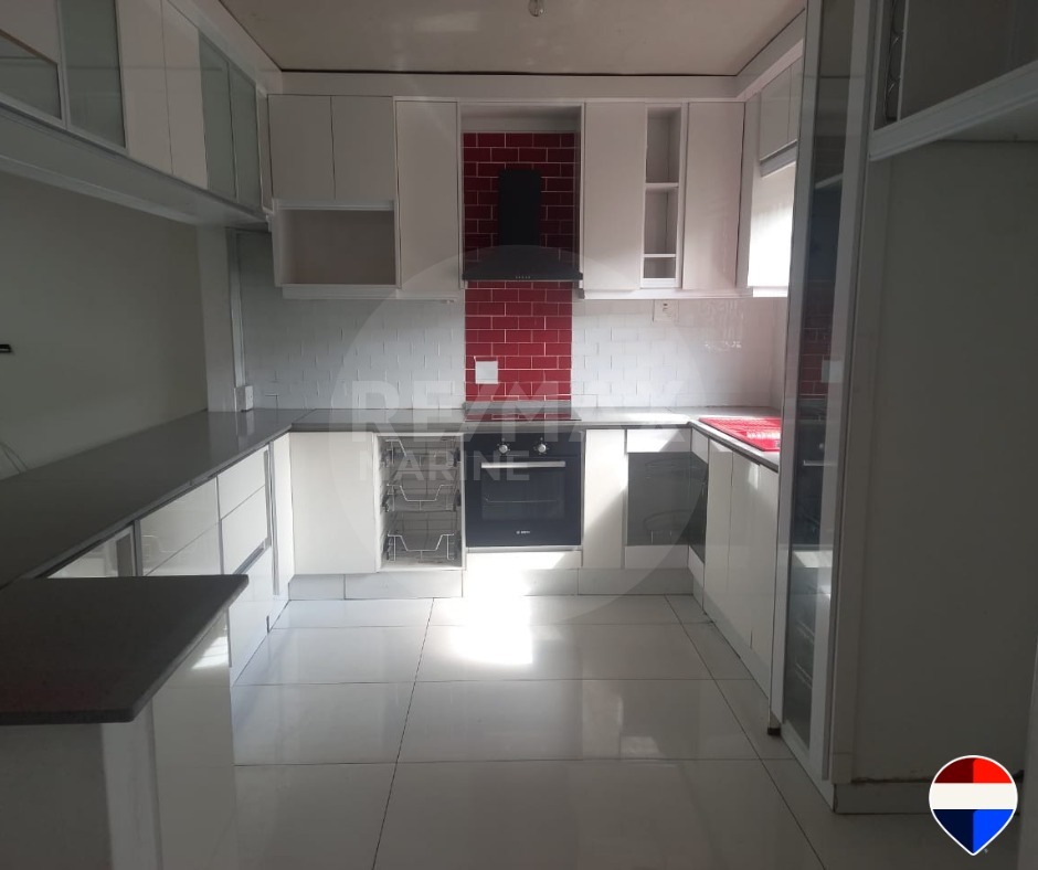 Upon entering, you're greeted by a bright and airy lounge, perfectly suited for relaxation or hosting guests. The adjoining elegant dining room provides the ideal setting for family meals or entertaining friends. At the heart of the home is the contemporary kitchen, complete with sleek fitted cupboards, a built-in stove, and ample counter space – a dream for home cooks and food lovers alike. A functional scullery adds extra space for cleaning and storage, keeping your kitchen neat and organized.