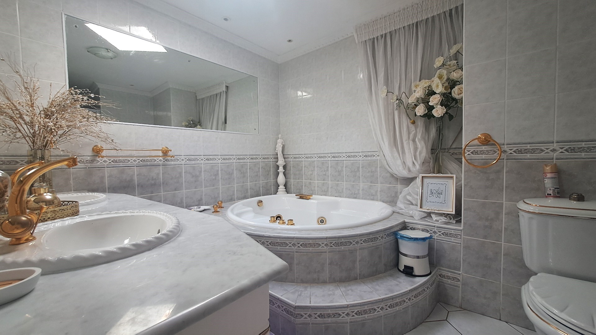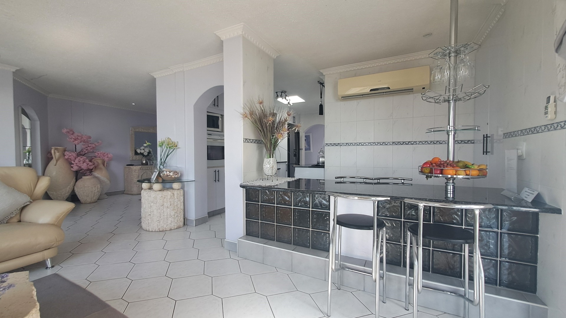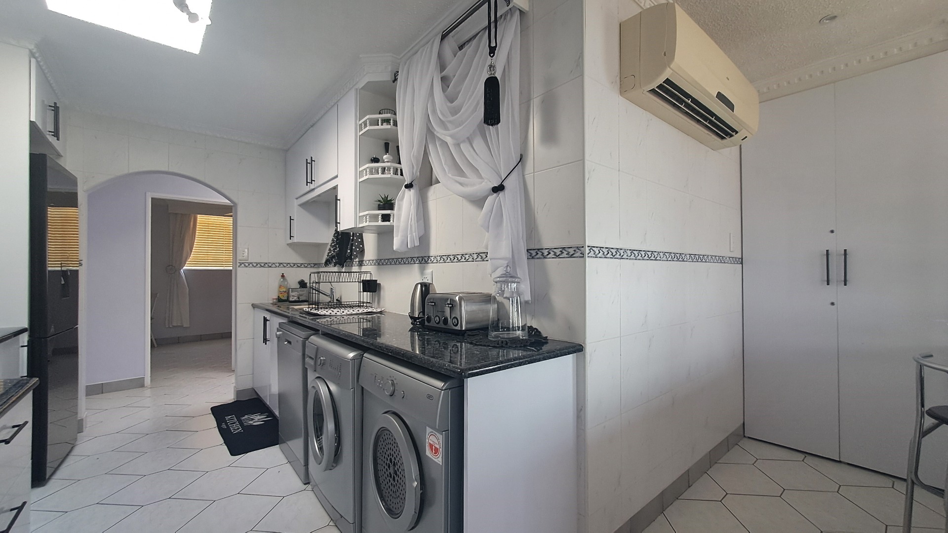 Accommodation comprises four spacious bedrooms and three modern bathrooms, with one being an elegant en-suite. Comfort is assured with air conditioning throughout, and the property is thoughtfully designed to be wheelchair friendly, ensuring accessibility for all residents. A dedicated laundry area adds to the home's practicality.