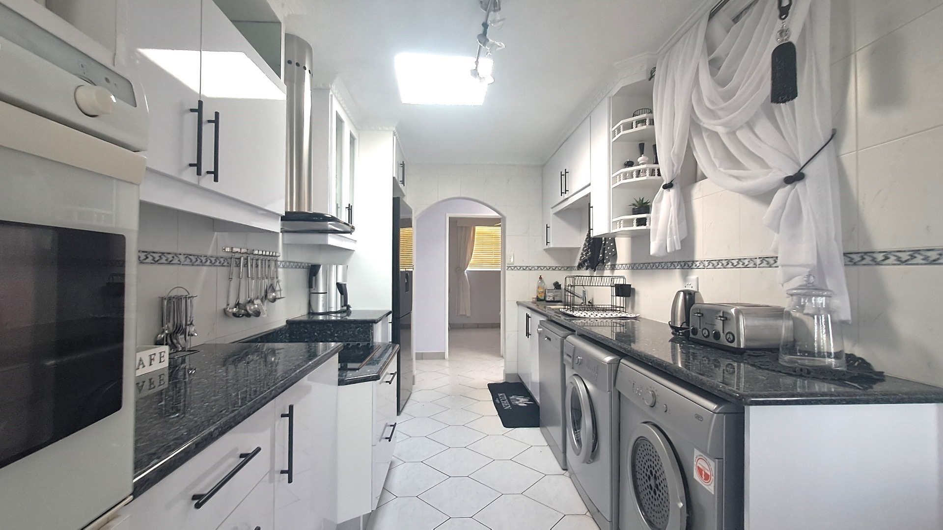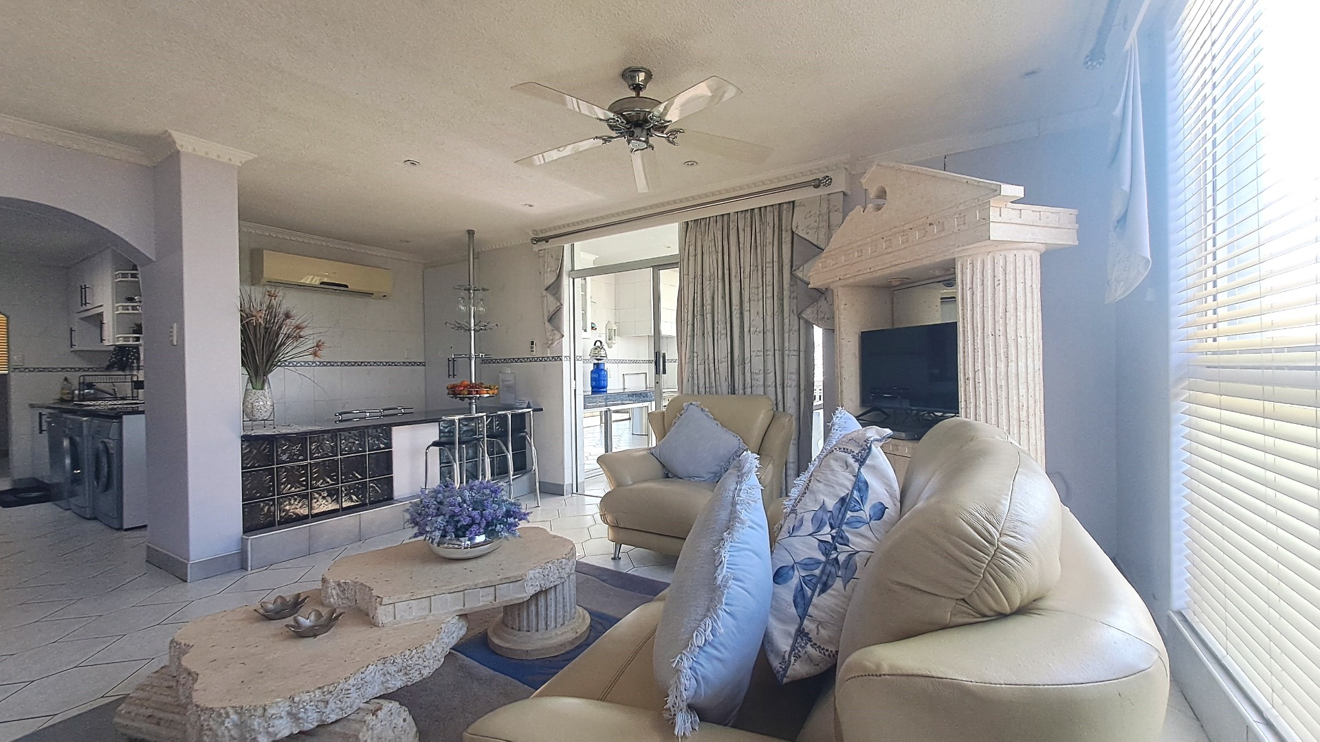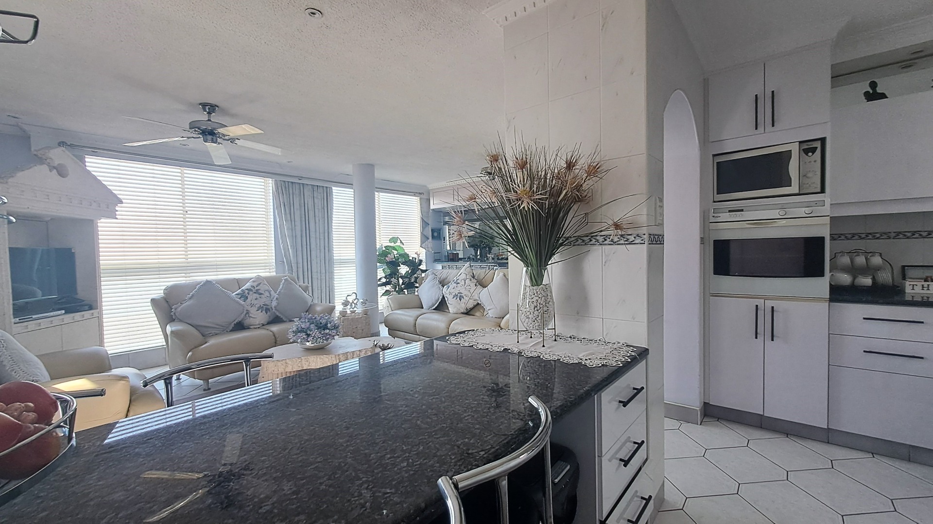 The outdoor spaces are equally appealing, featuring a private patio and a refreshing swimming pool, ideal for enjoying the Margate climate and scenic views. With four dedicated parking bays, convenience is paramount for residents and guests.